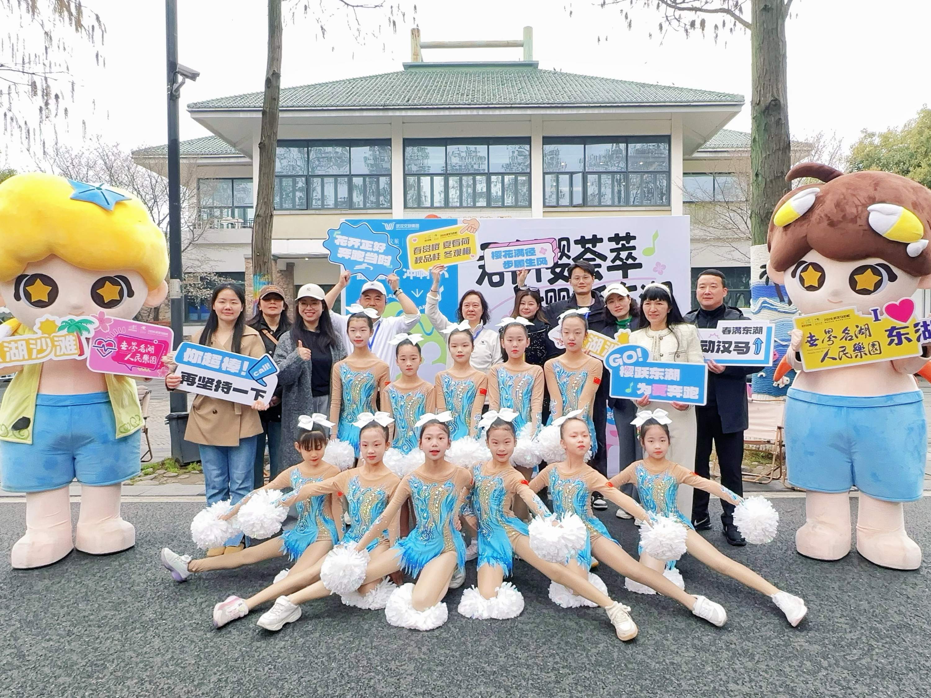 当选手们跑至东湖沙滩景区门口,华侨城小学队员们手持白色花球,用整齐灵动的舞姿为奔跑的健儿们加油鼓劲,憨态可掬的东湖沙滩萌偶并肩而立,与市民志愿者们一同挥舞手牌,呐喊声与动感节拍交织成热烈的助威声浪。来自华侨城小学501中队的袁小野难掩激动的神情,“能代表东湖风景区和华侨城小学,用舞蹈为马拉松运动员们加油鼓劲,我格外珍惜,更是发自内心地开心与自豪!”武汉欢乐谷主题花车则在白马道人行天桥上化身“能量加油站”,为汉马选手助威。樱花彩车缀满花瓣与灯带,音乐巴士奏响激昂旋律,搭配机器人机械舞与啦啦队表演,将浪漫与活力铺满。“看到花车瞬间又有劲儿了!”本地跑者张女士说,创意补给比能量饮料更暖心。