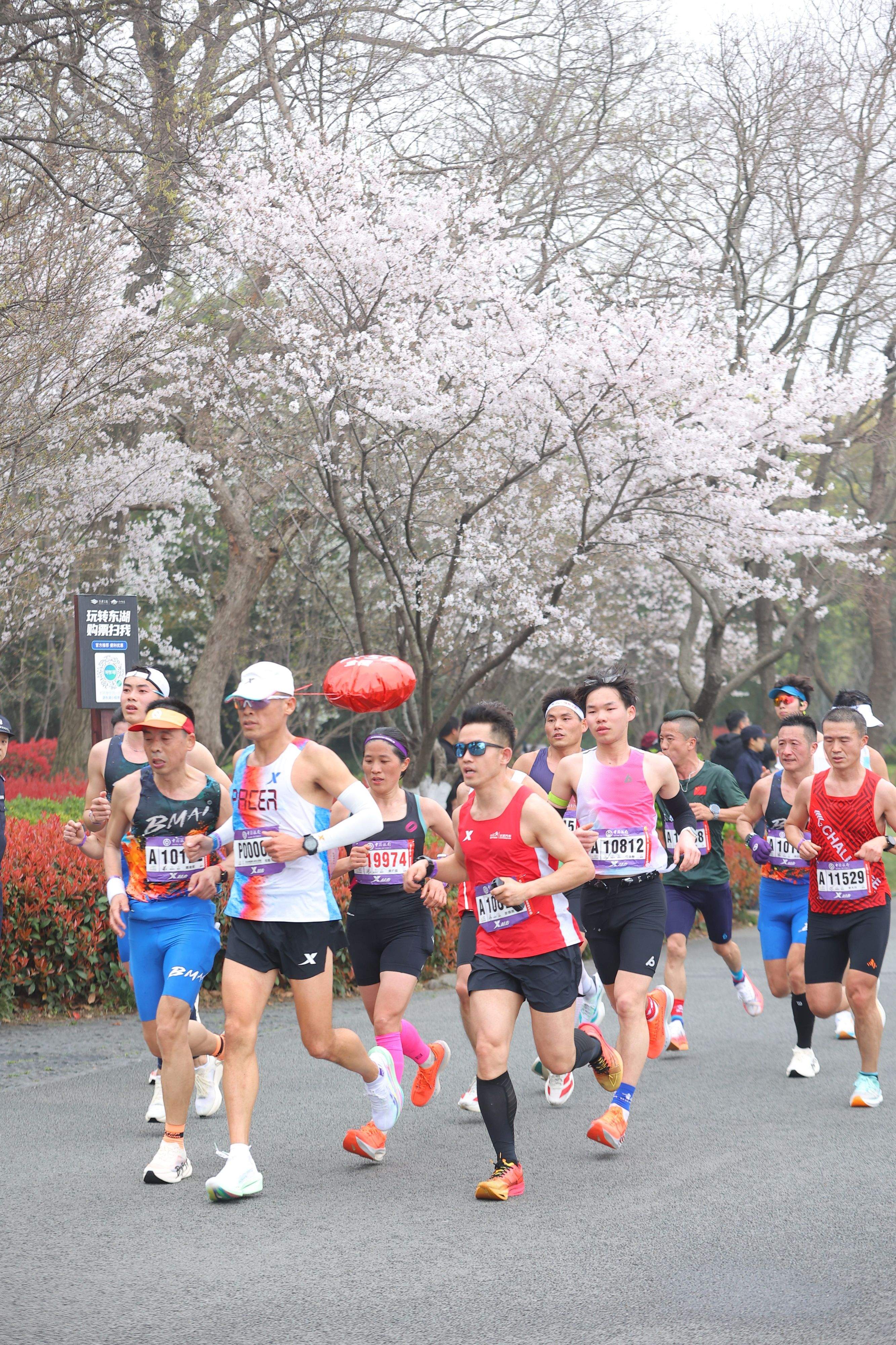 汉马东湖赛段樱花元素拉满。