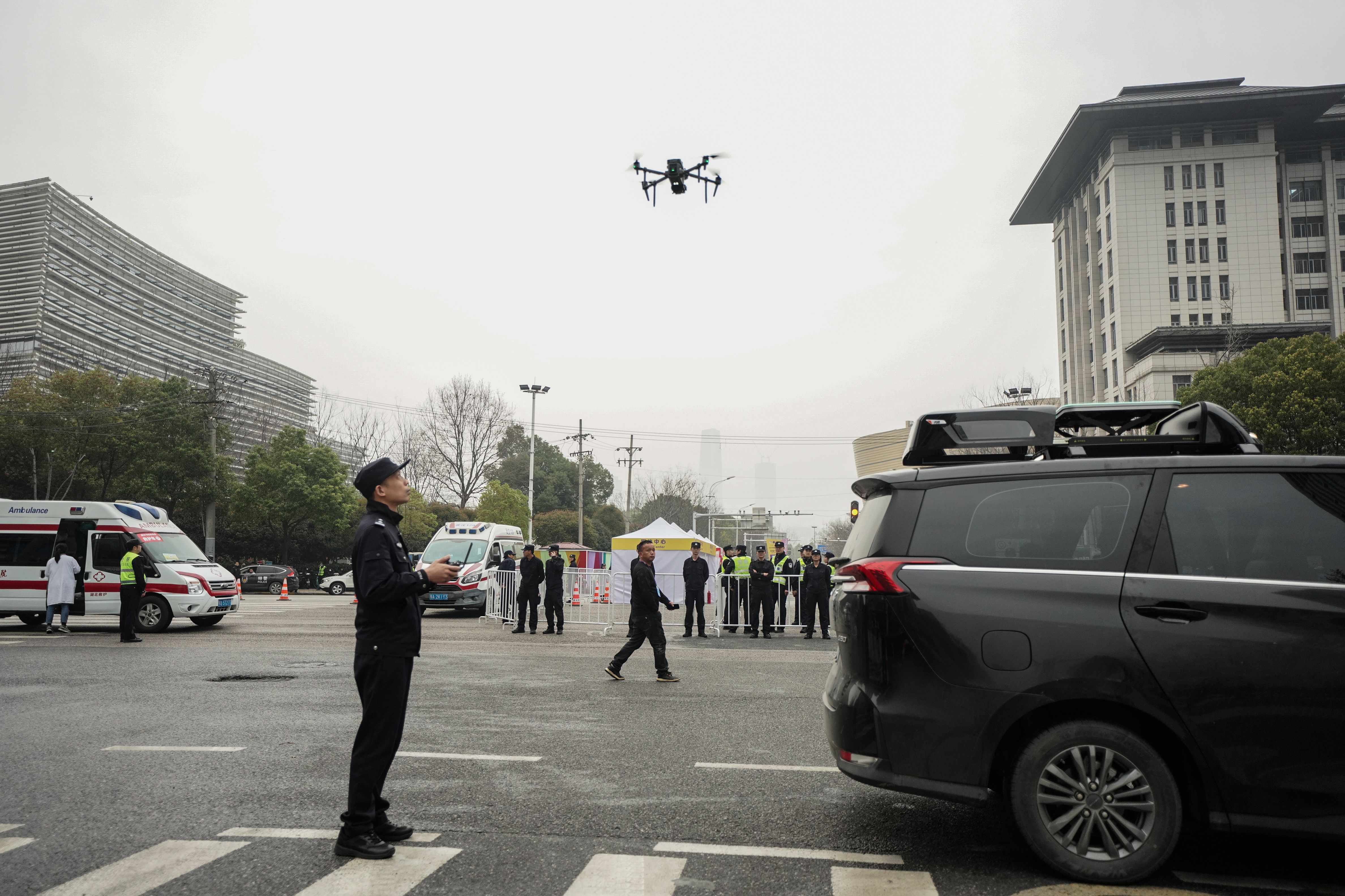 “警用无人机升空,画面同步接入情报指挥中心!”早上6点,分局大数据分中心在半程马拉松终点书卷路,启用车载警用无人机机巢。空中“鹰眼”持续巡航,将实时画面回传指挥部,配合地面警力完善周边封控与车辆引导,为赛道安全扫除隐患。