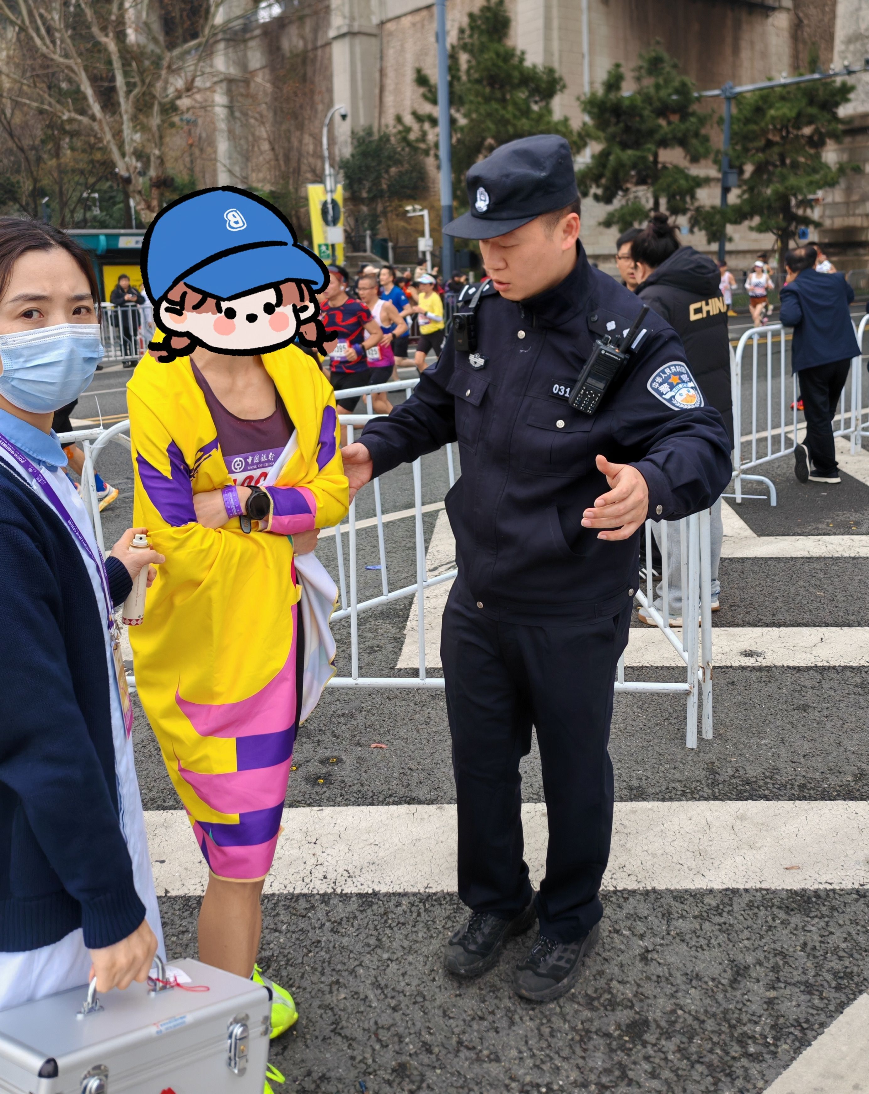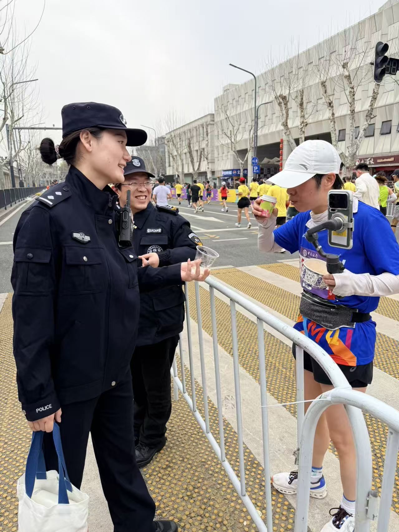 “一口咖啡,能量满满,感谢警花!”9点30分许,在红巷路口补给站,为防止选手扎堆,中华路街派出所民警张橙橙与志愿者分工协作,将咖啡、米酒、盐丸等逐一递到选手手中,并引导大家分散补给,有序维护着赛道周边秩序。“有选手蹲下了,快去看看情况!”上午10时许,在汉阳门码头附近,一名选手不慎崴脚。中南路派出所民警万方发现后,立即上前引导其移至赛道边,在确保赛道通畅的同时,迅速启动现场联合救治机制,确保选手得到周全的照顾。