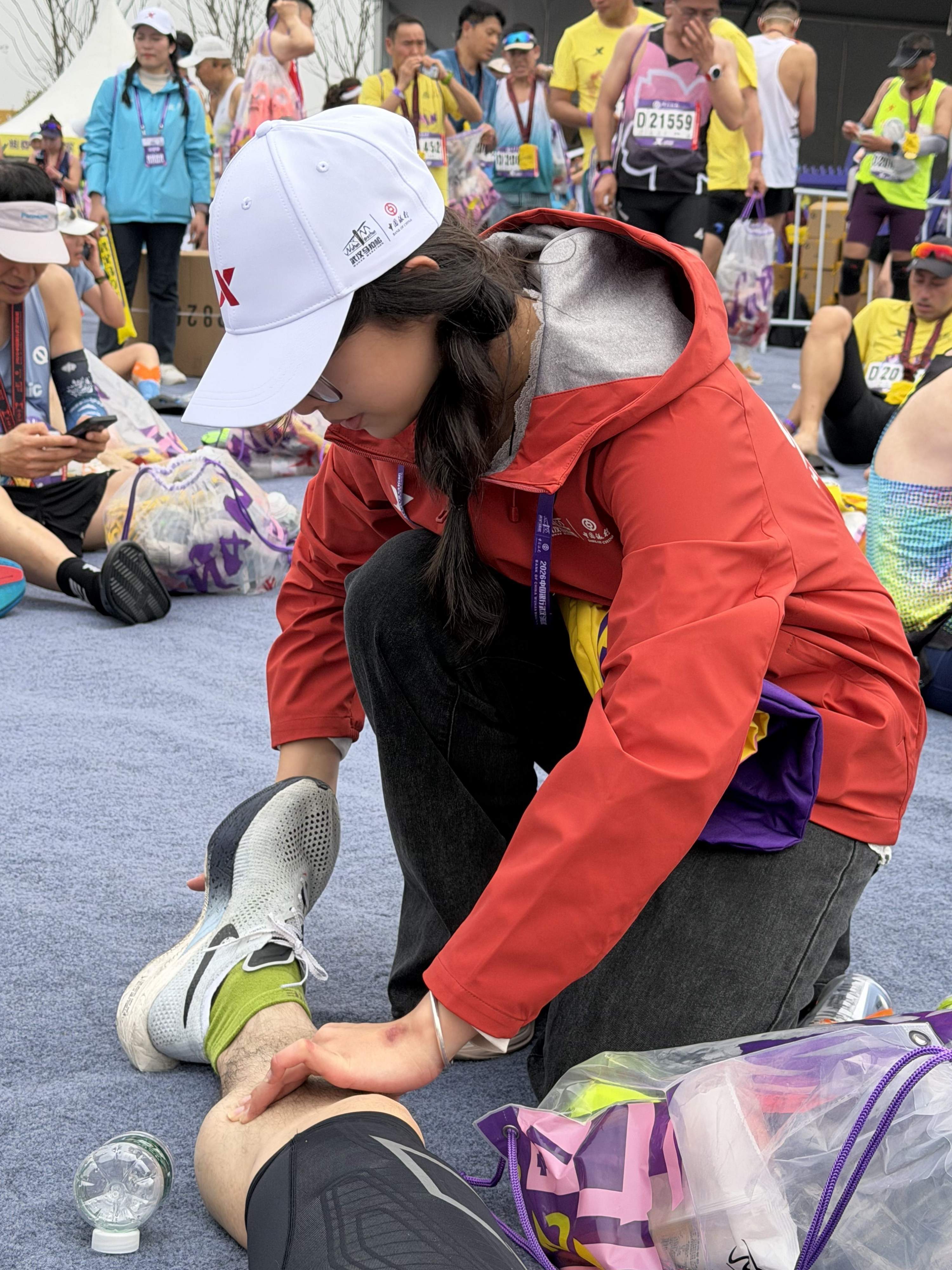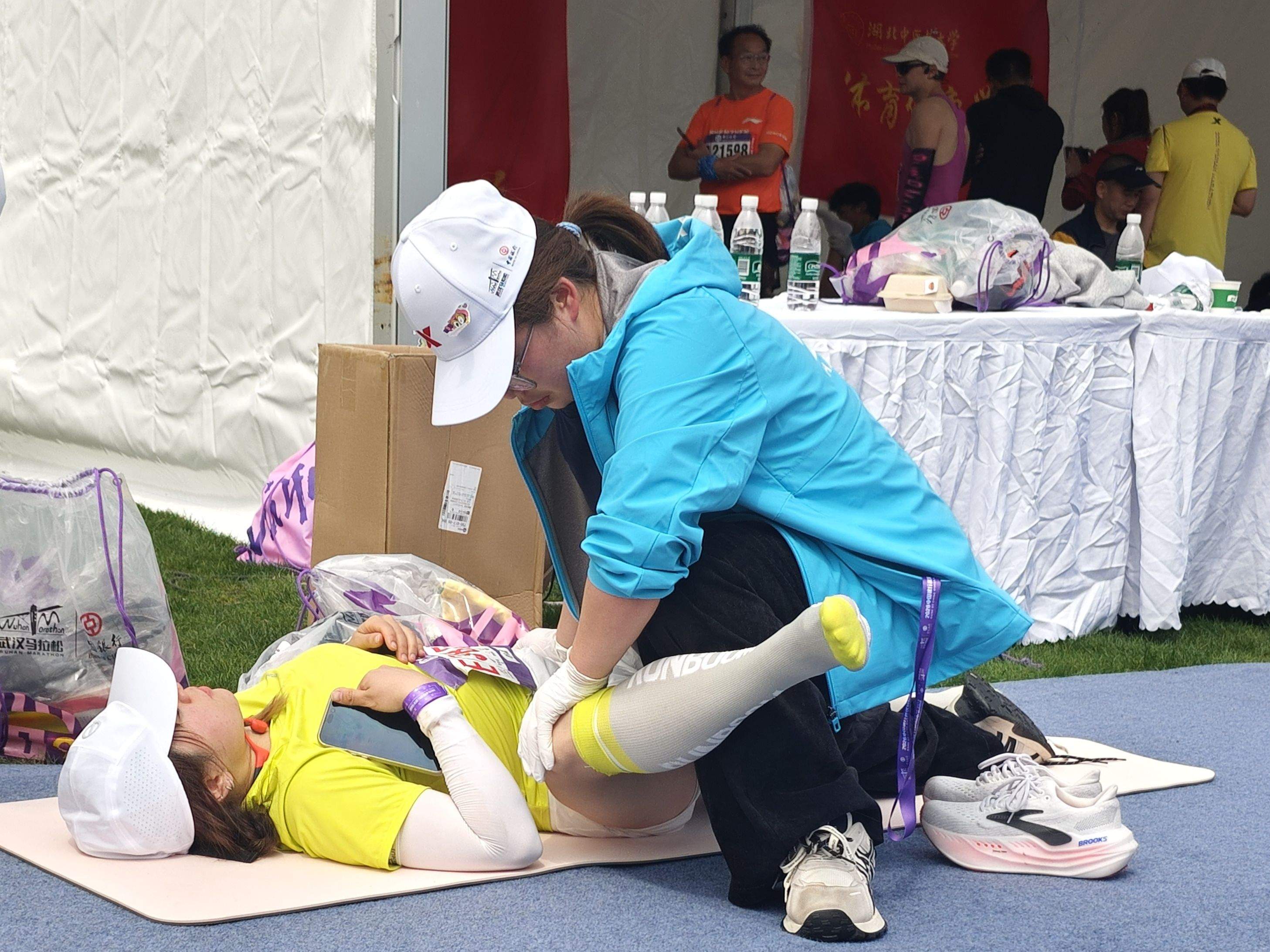 “很多选手被‘按’了一次后,都追着问我们在哪儿坐诊。”张文玥笑着说。她曾帮助一位抽筋严重的跑友,对方当场被“圈粉”。比赛日,她服务的第一位跑者正咬牙坚持,“我仔细为他喷上擦剂,希望能缓解一些艰辛。”仅一上午,她的服务点就进行了40余次处理。