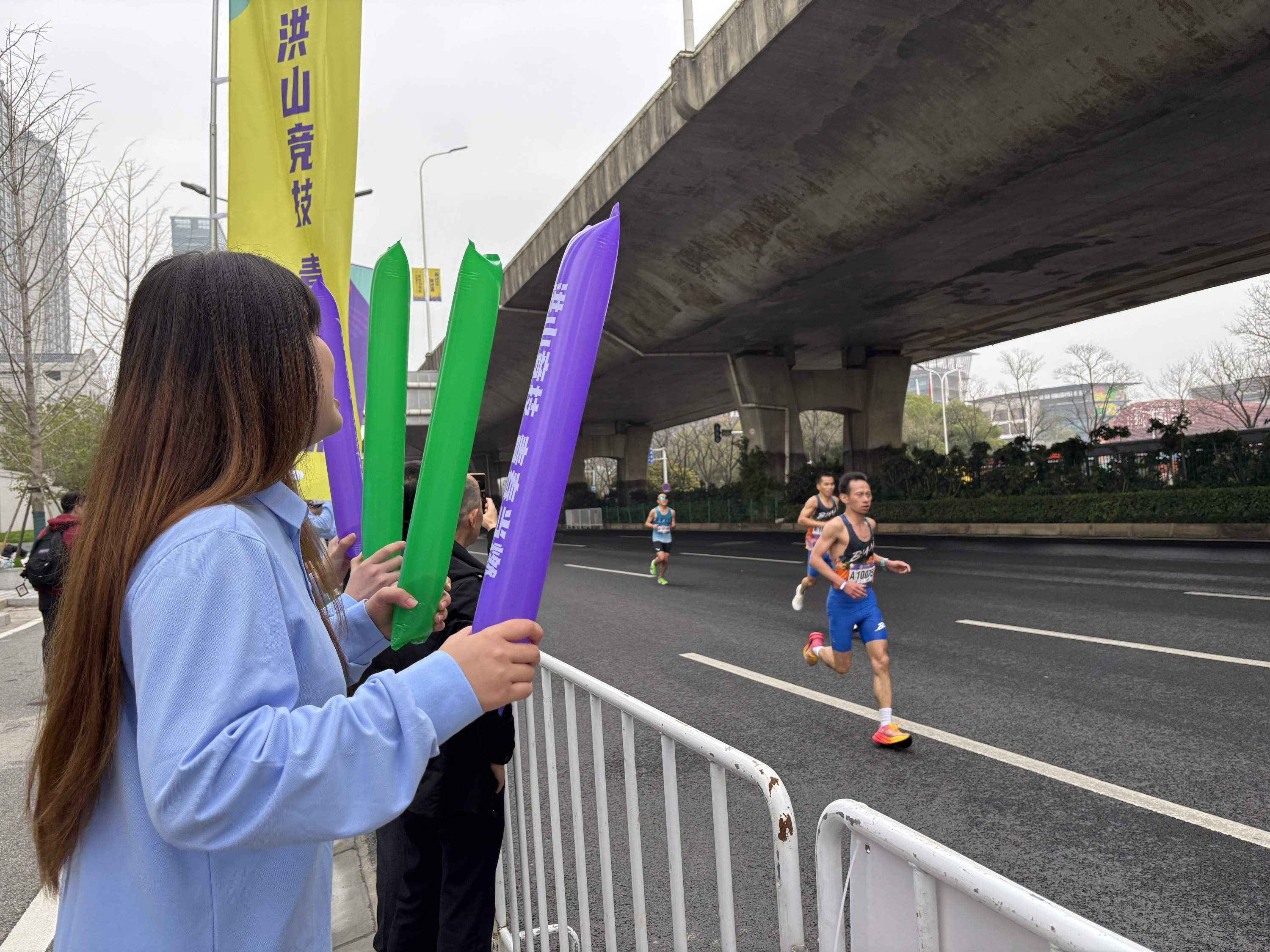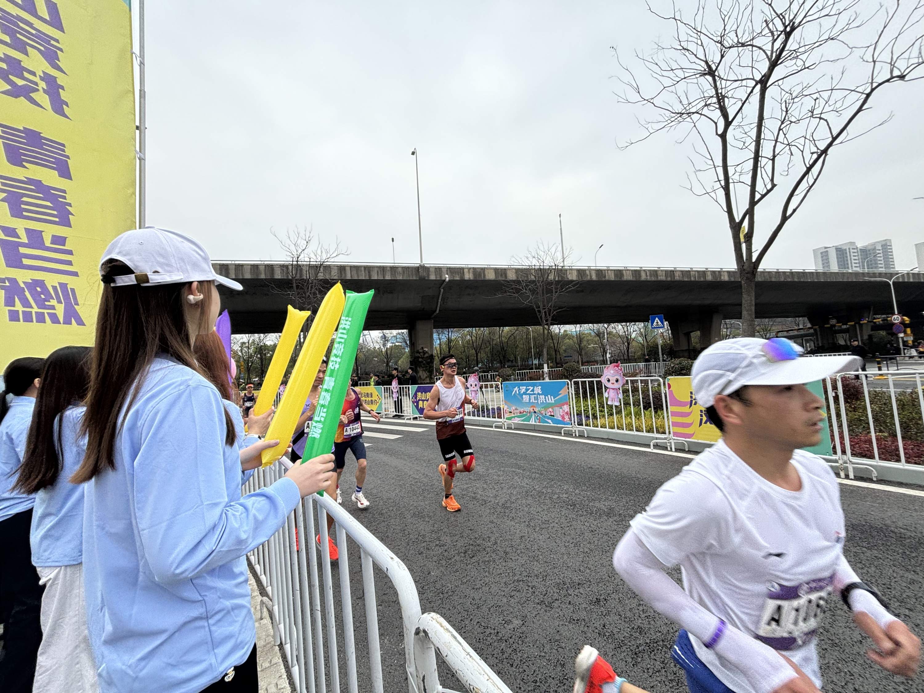 “来了吗?大家都准备好!”上午9时20分许,武汉马拉松洪山赛段,仁和路拐弯处刚出现第一道人影,百余名大学生志愿者便不约而同地晃动手中的加油道具。当全马第一梯队选手的身影终于清晰映入眼帘时,呐喊声、欢呼声与加油声交织成一片,瞬间点燃现场气氛。