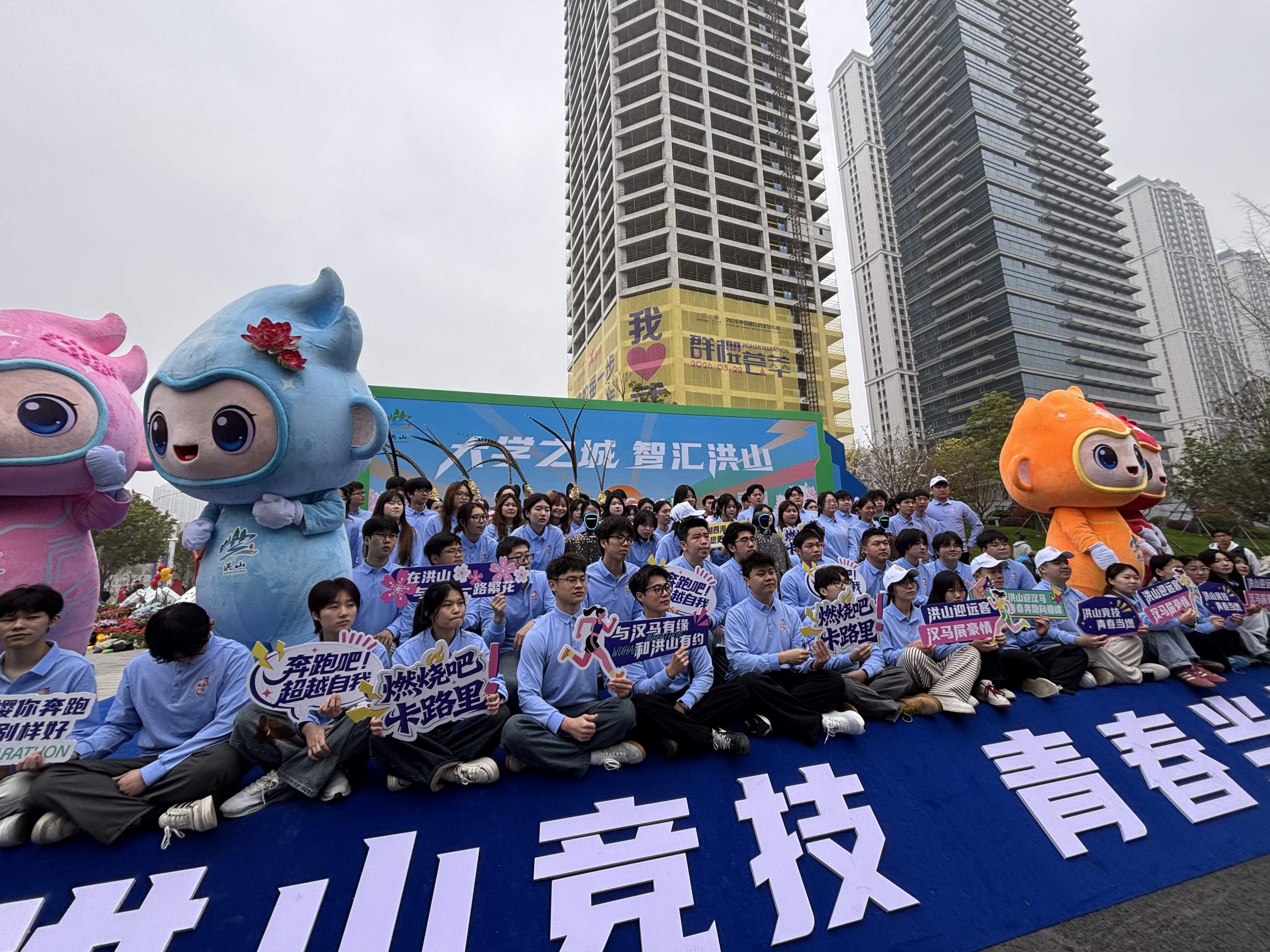 120名大学生志愿者参与汉马(洪山赛段)保障工作,向世界跑者展现洪山志愿服务青春活力。栾嘉雯 摄