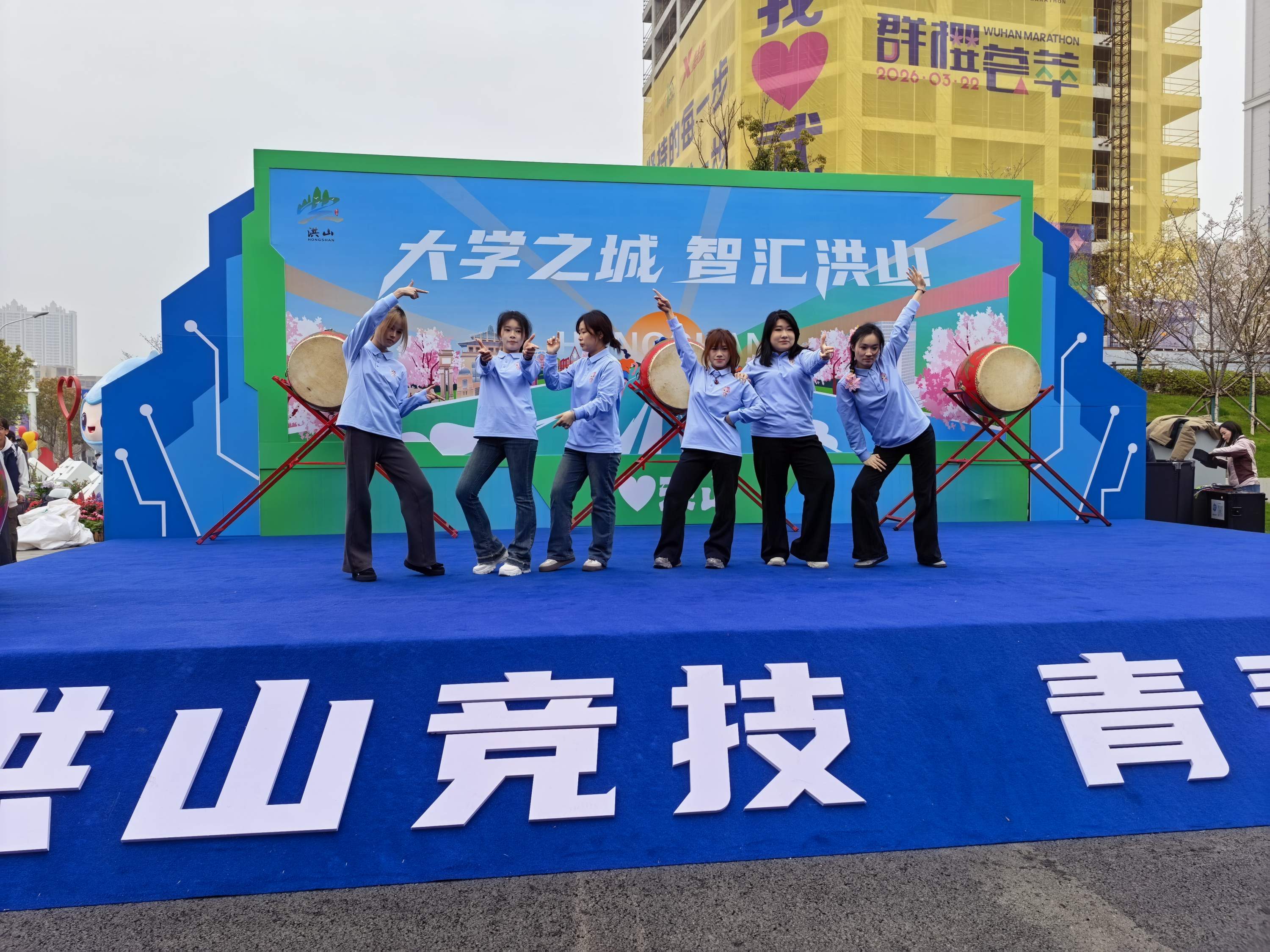 “为了今天的表演,我们提前准备了一个星期,希望能以最好的状态为跑者加油。”湖北商贸学院大三学生魏依伶额头上布满了汗珠,却难掩兴奋。她说,每当看到跑者经过、听到他们的道谢,就感觉浑身充满力量,跳得也更有劲了。“这次志愿活动特别‘抢手’,报名通道一打开,名额很快就满了,大家都想抓住这个机会,为汉马出一份力。”