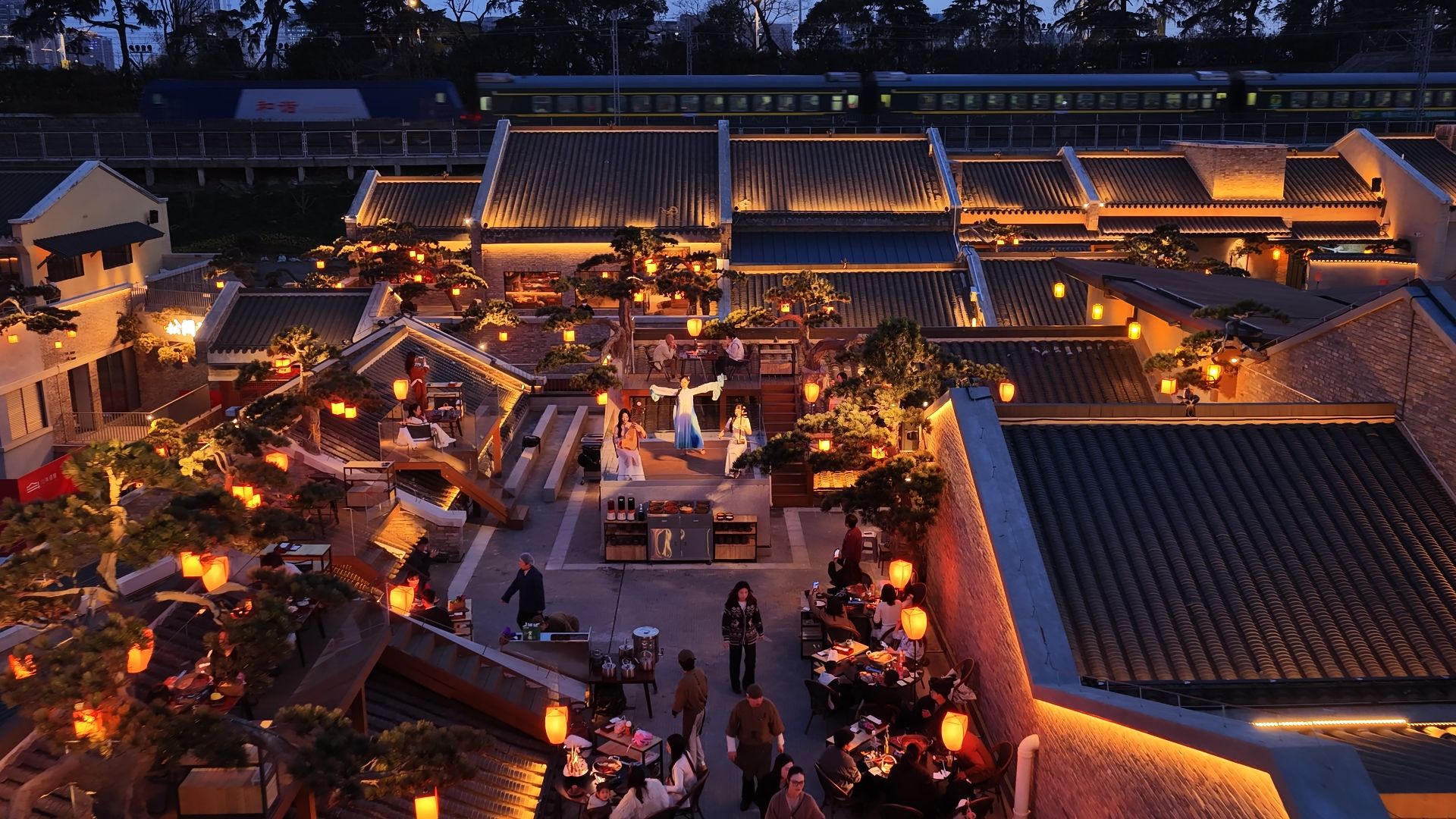 在斗级营青瓦斜坡屋顶的“宝记松间火锅”,游客放眼可望火车穿行而过,抬头即见巍峨耸立的黄鹤楼,体验王维诗句中“明月松间照,清泉石上流”的诗意世界。