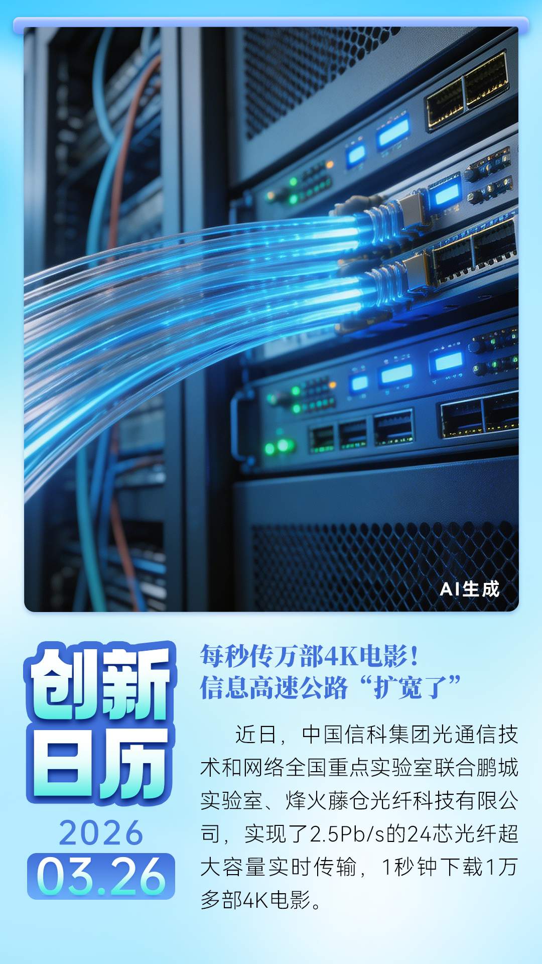 每秒传万部4K电影!信息高速公路“扩宽了” | 创新日历