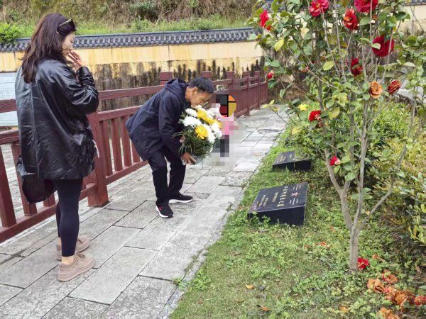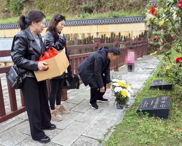 3月30日下午,来自河南省信阳市罗山县的市民江道田与几名亲人,历经500多公里跋涉抵达湖北省宜昌市秭归县,在秭归县退役军人事务局工作人员的陪同下,前往墓地为自己的伯伯江正印烈士扫墓。