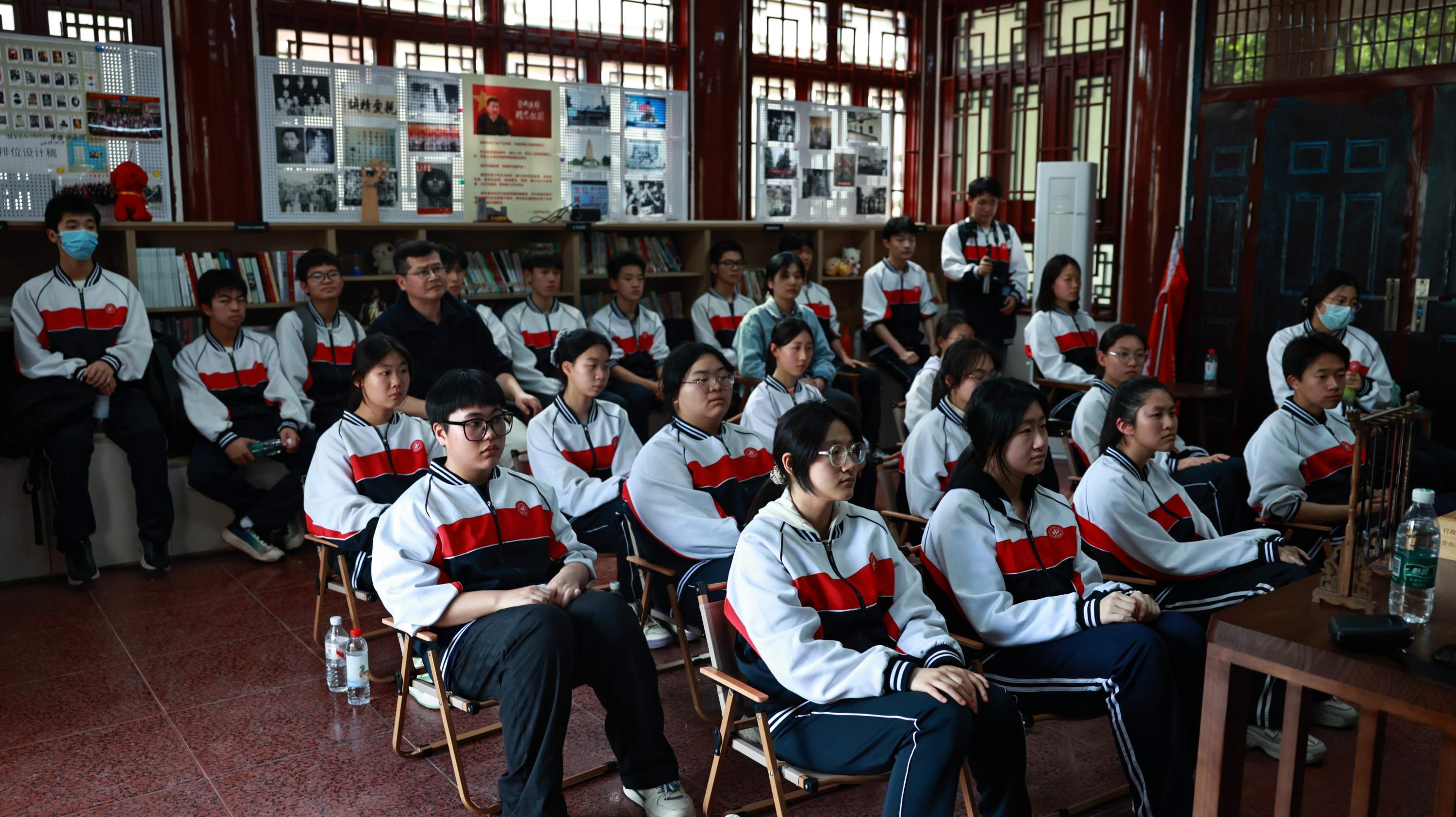 在怀民书屋前,同学们发出铿锵有力的青春誓言。镜头记录下同学们凝重的表情,也记录下他们眼中燃起的光。