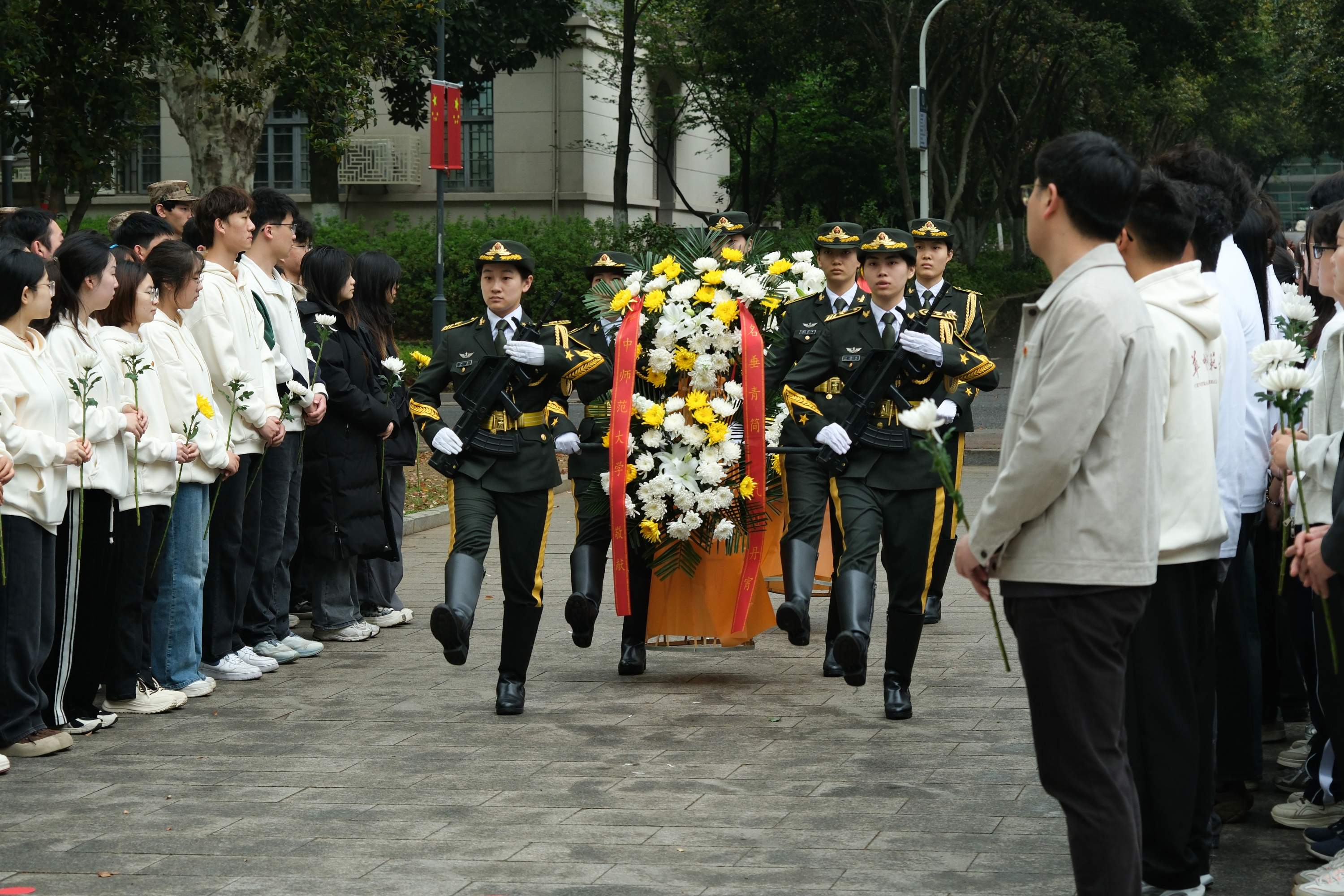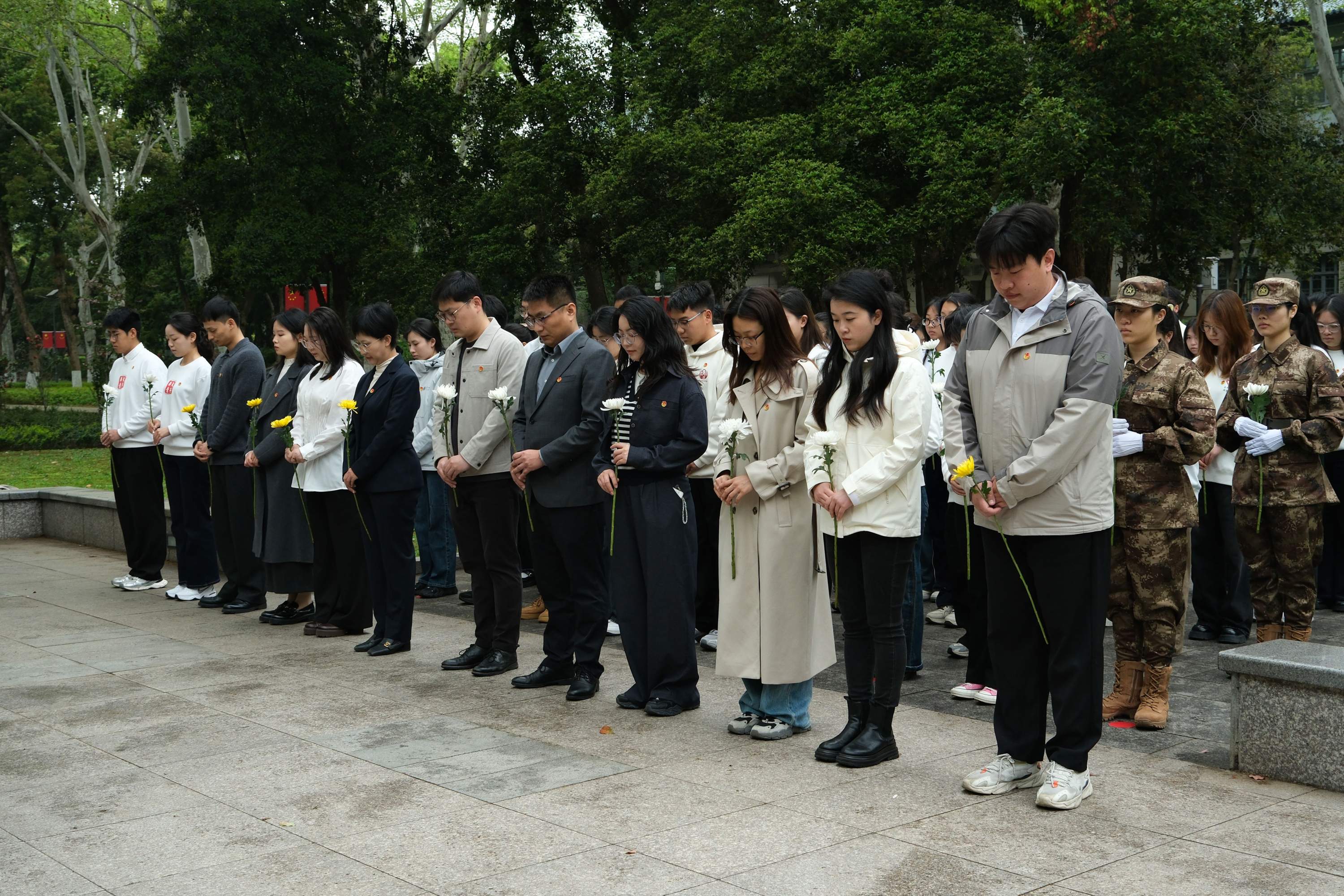 在主持人的引导下,全体师生缓步上前,敬献鲜花、俯身鞠躬,寄托对先烈的追思与敬意。同学们表示,将以青春之我、担时代之责,把对先烈的缅怀与敬意,转化为踏实学习、奋勇前行的实际行动,让理想薪火在桂子山上代代相传。