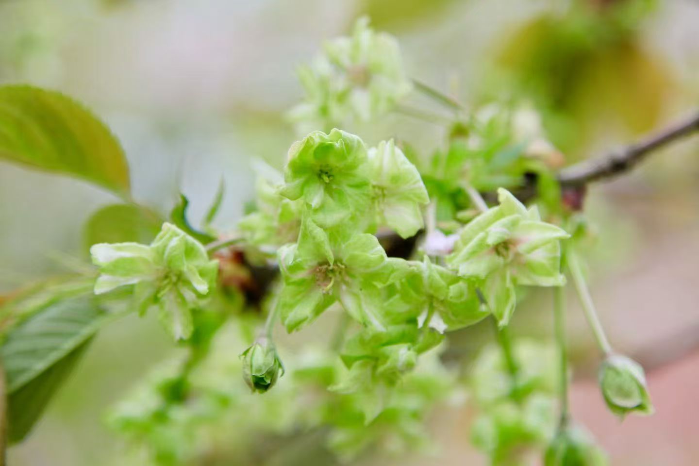 东湖樱花园珍稀绿樱“御衣黄”绽放。赵丽 摄