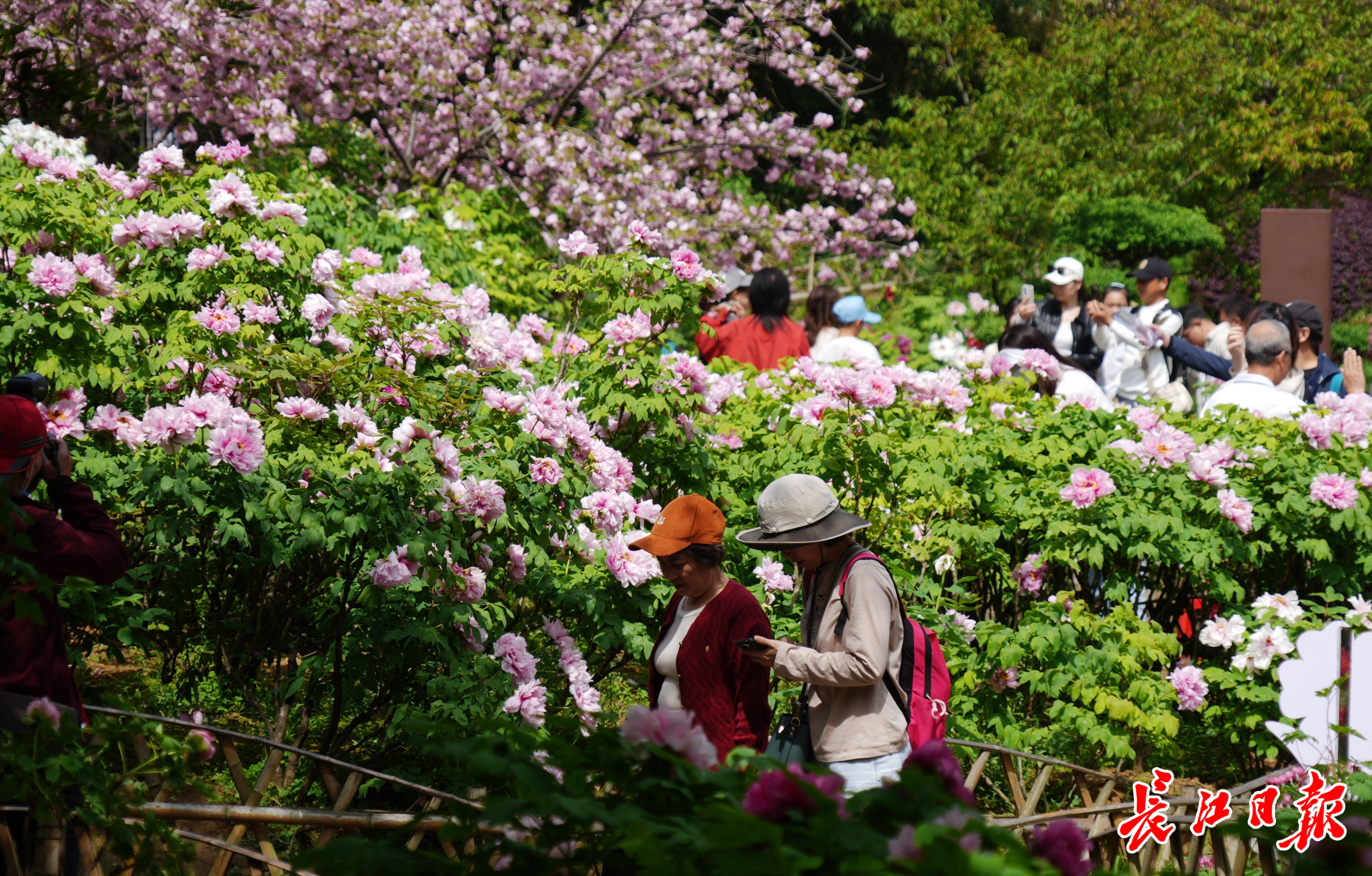 东湖牡丹园七花同放,满园春色。记者何晓刚 摄