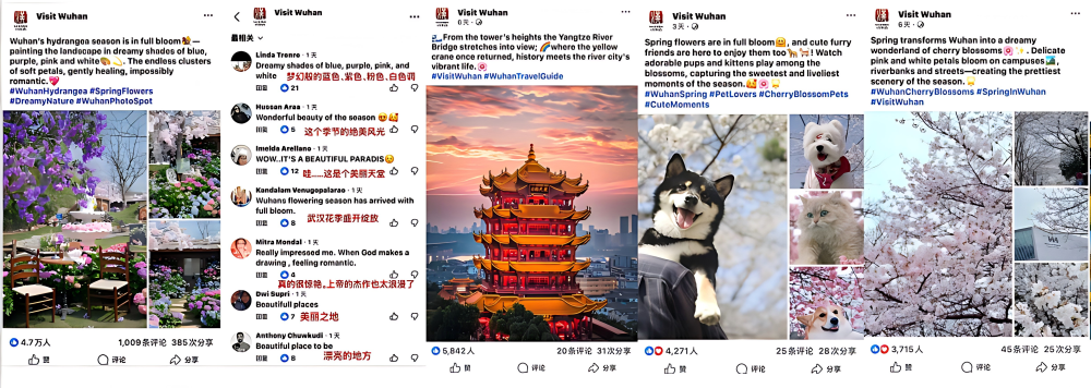 武汉文旅海外社交媒体账号的出圈,并非“美图+美景”的单向输出,而是通过科技赋能、情感连接、文化共鸣,打造“可参与、可互动、可分享”的文旅内容产品。账号持续推出“AI赏花”“精美日历壁纸”等系列话题,多次创造“百万+”曝光量级的传播案例。