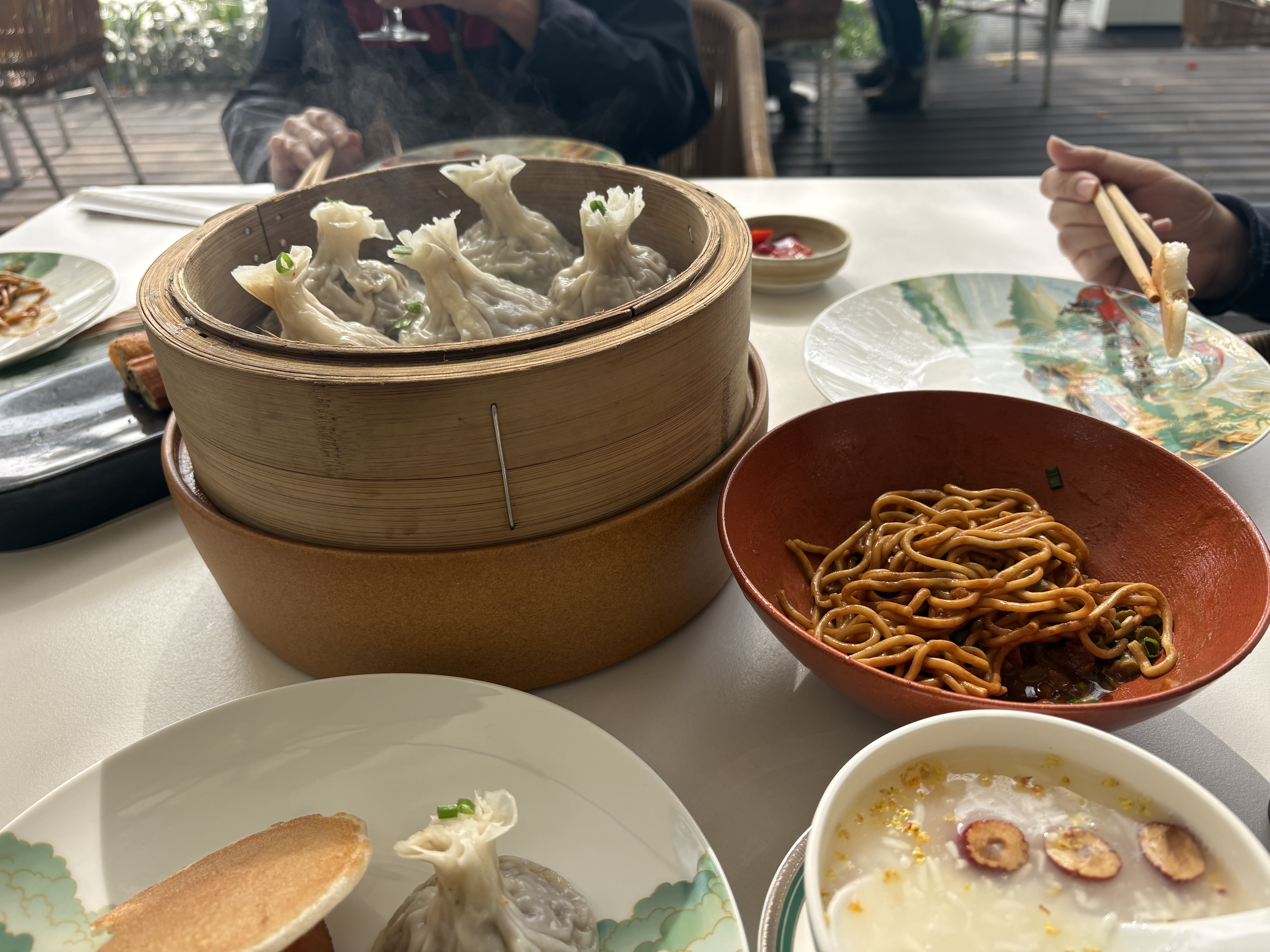 江西游客王君和朋友是在4日上午慕名而来的。她早就被网友种草了这家餐厅,收藏已久,行程表上专门列好“打卡漂亮早饭”。这一顿,成了她们小长假赏花之旅的第一站。她们把想尝的餐品点了个遍,上菜后第一件事就是掏出手机,对着盘中精致的餐食和几米开外的湖景按下快门。