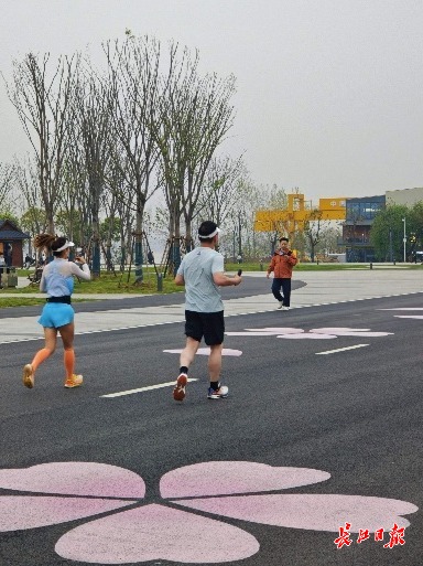青山江滩独有的“樱花跑道”。记者郝天娇 摄