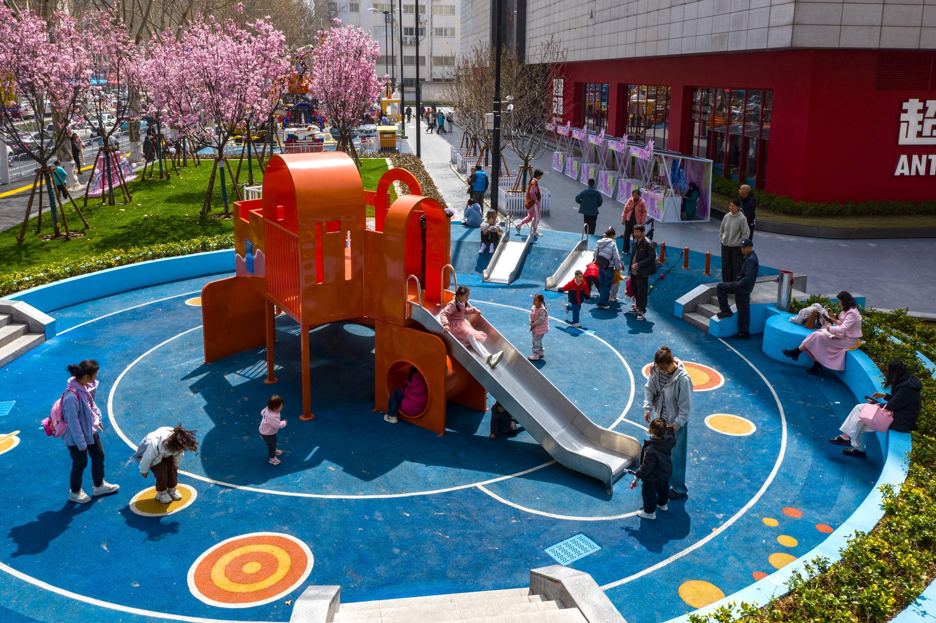 武商MALL·众圆外,不少家长带小孩游玩。 汪涌 摄