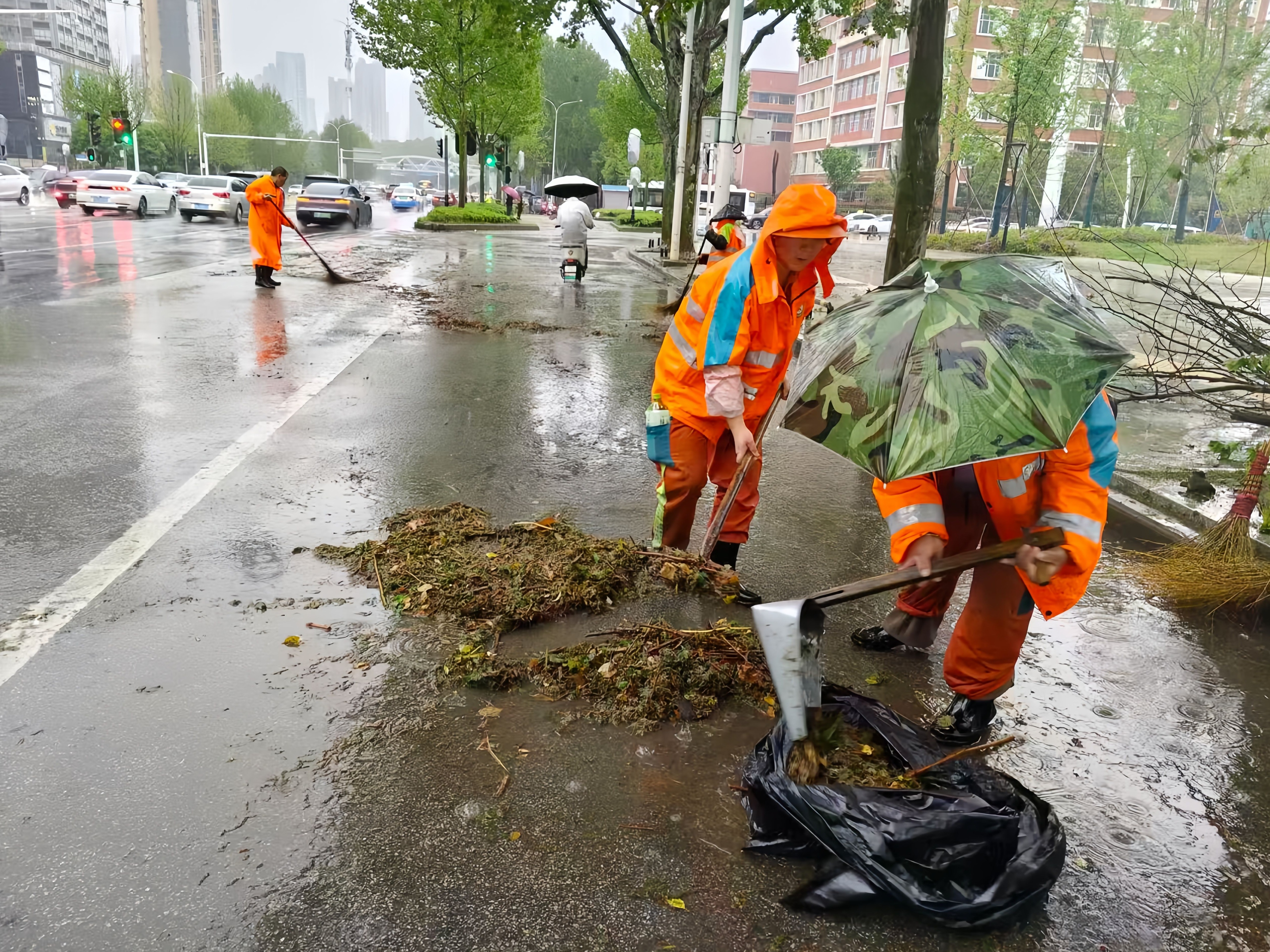 截至9日上午,江岸环卫共出动人员2300余人次,车辆200余台次,提前清理630处辖区窨井口,清理断枝27处,处置积水点89处,清理各类垃圾26吨。尽管暴雨仍在持续,但全区主次干道排水通畅,路面无大面积渍水。