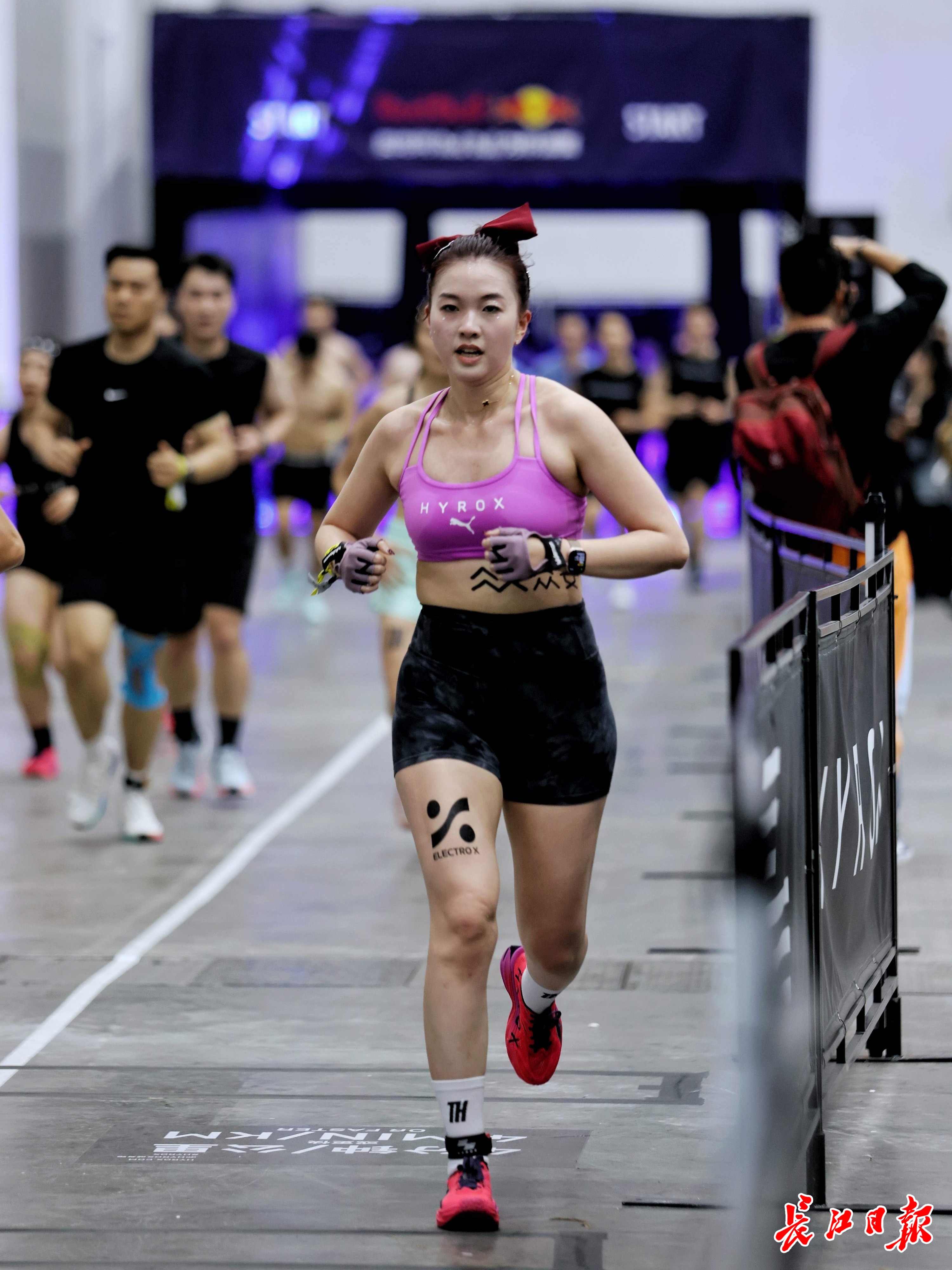 有别于传统体育赛事的粗犷与硬核,HYROX将“时尚”刻进了DNA。从入场时炫酷的墨镜发带、个性彩绘,到现场动感的电音节奏,再到极具视觉冲击力的运动装备,这场体能赛更像是一个大型潮流生活秀场。