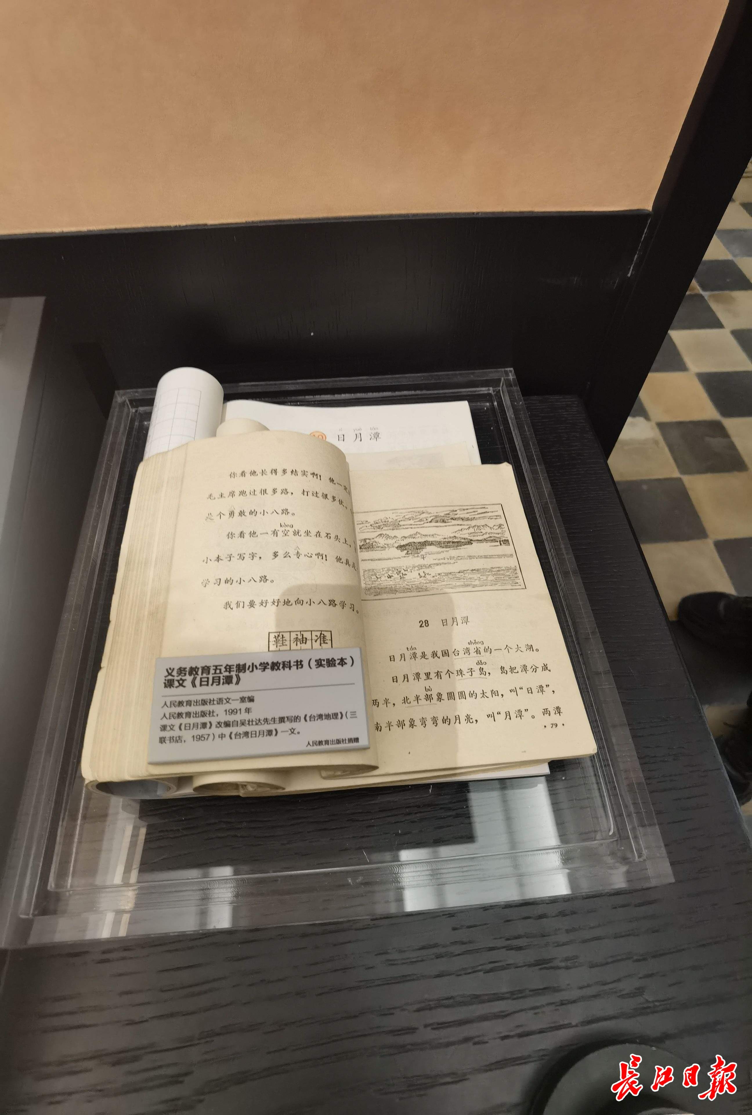 中山大学校史馆内展出的不同版本的《日月潭》课本。记者杨佳峰 摄