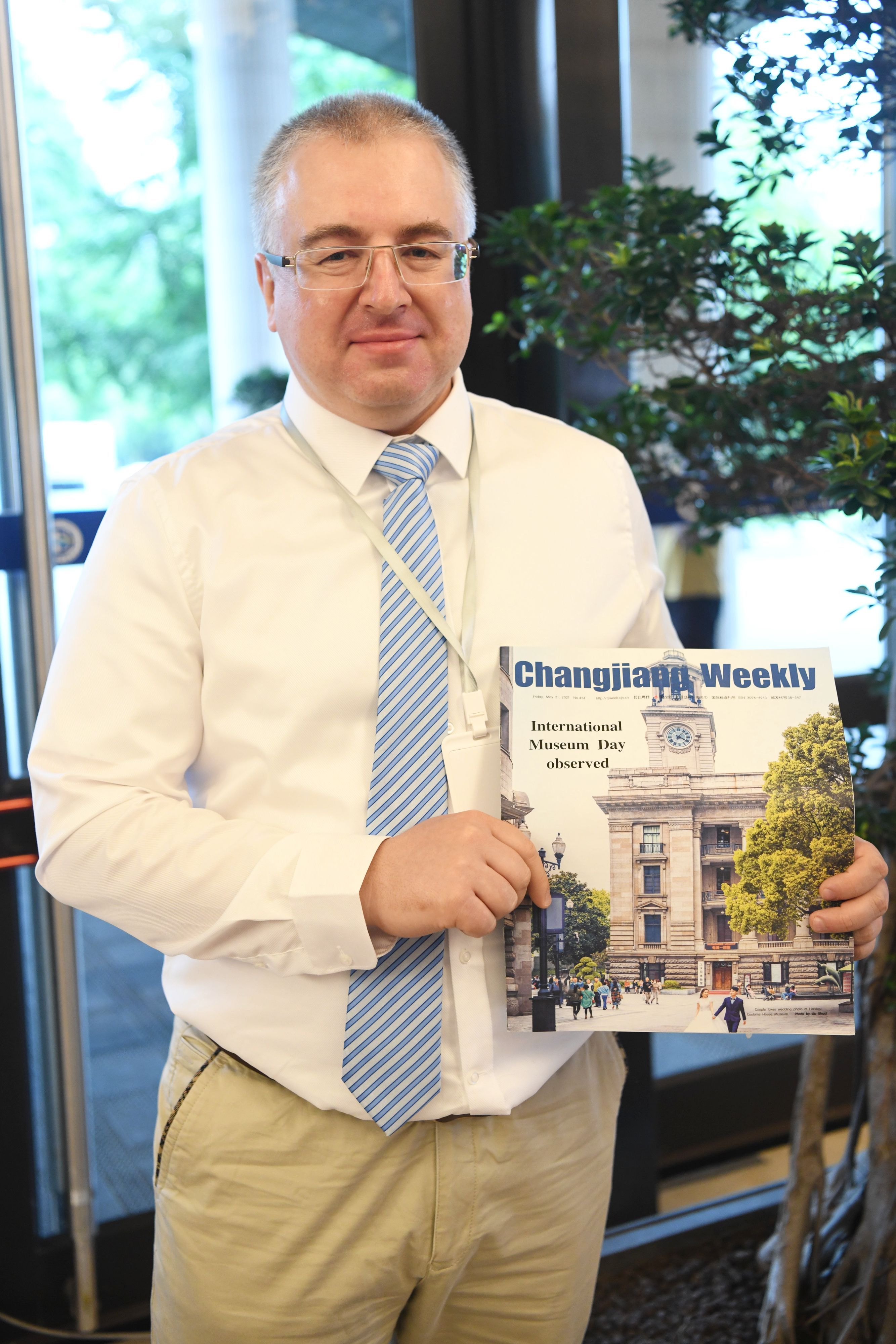Aleksei Zubko with a copy of Changjiang Weekly