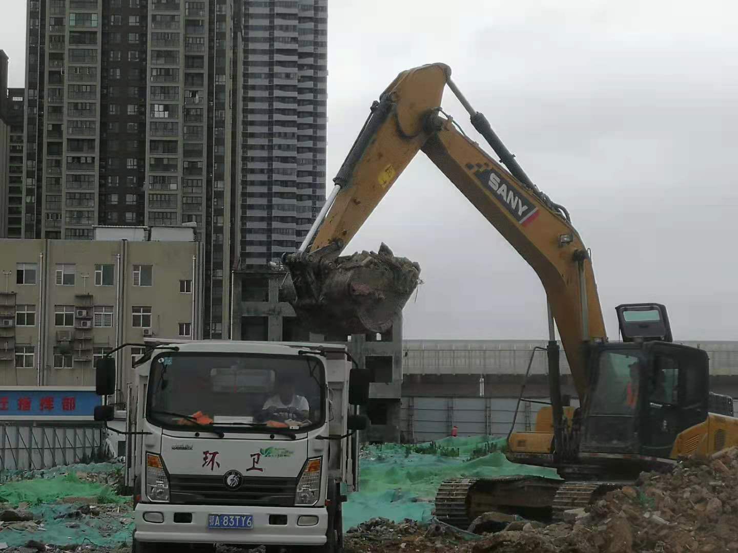 汉阳米粮村还建房拆迁工地,挖机正在清运暴露垃圾。通讯员张国新 曾强 供图