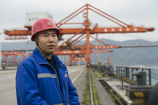 重庆果园港集装箱码头有限公司技术部部长张福全接受本报记者专访。 长江日报记者胡冬冬 摄