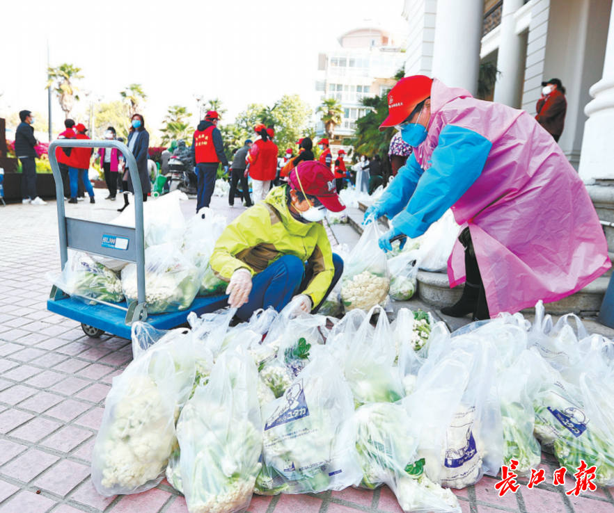 2020年3月17日,积玉桥街金都蓝湾社区居民迎来爱心菜。长江日报记者何晓刚 摄