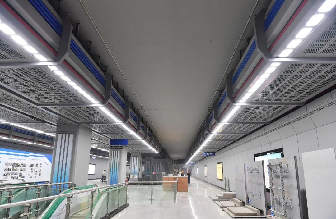 站厅天花板两侧和中间安装“综合管廊”