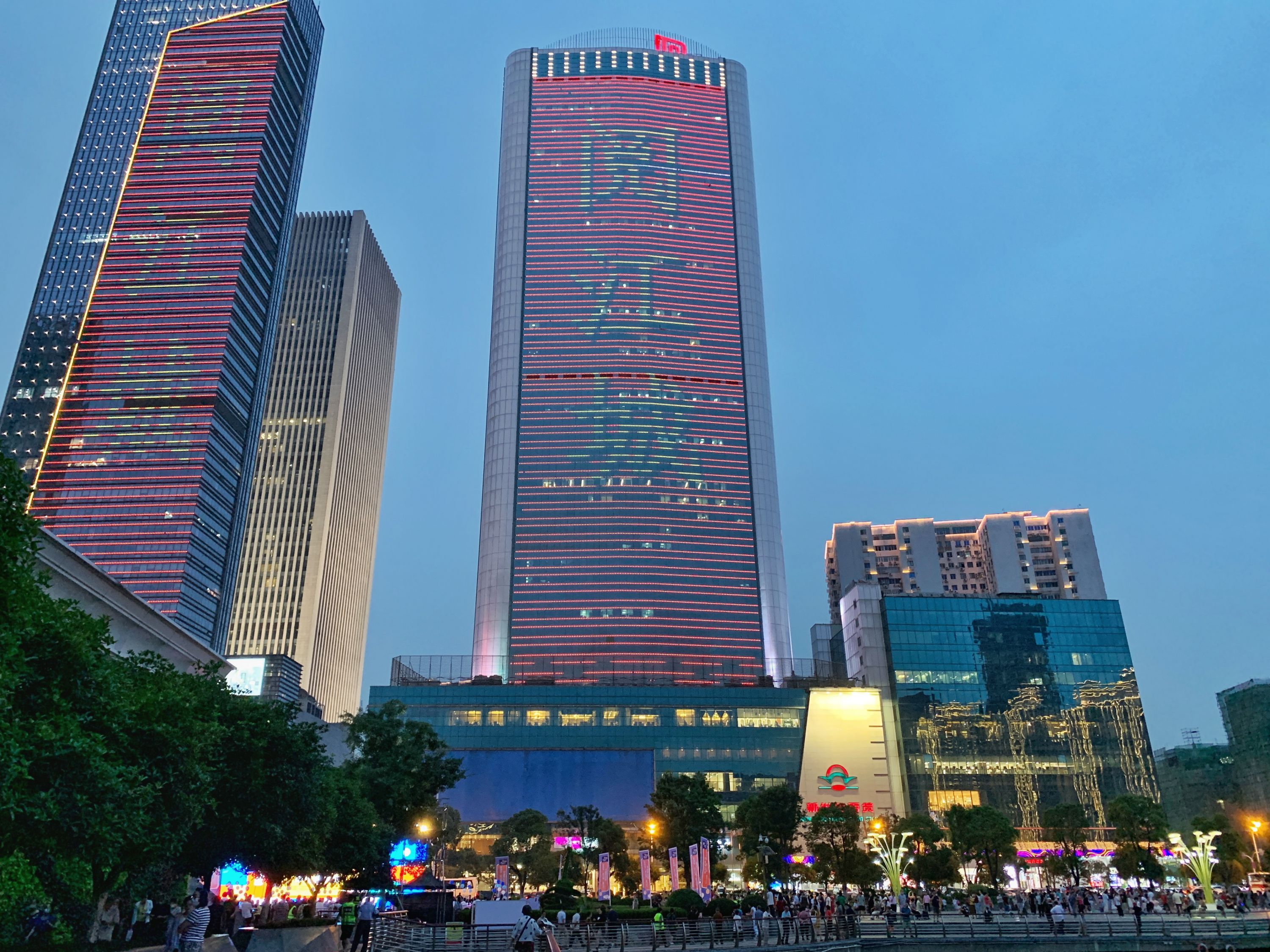 数座高楼点亮外墙灯幕,欢迎高校学子的到来。 长江日报记者乔驰 摄