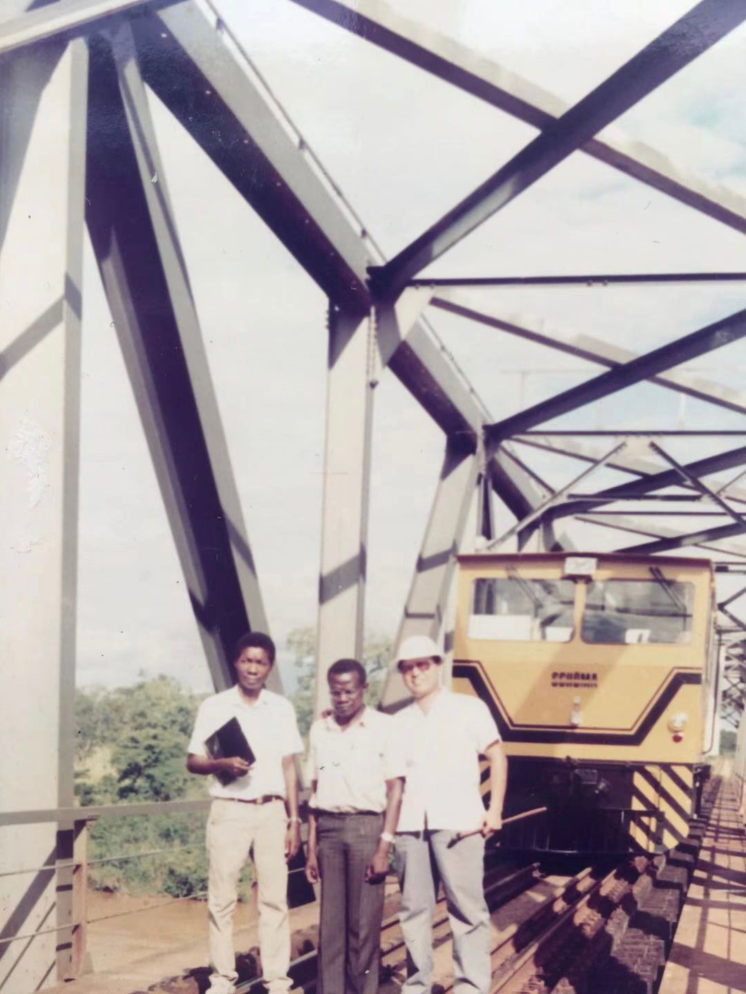 中国专家组成员经常深入到沿线安装和更换设备、组织事故救援,解决机、车、工、电、辆各个部门的疑难问题。刚到驻地第2天,我就和桥梁专家乘轨道车到62号铁路桥抢险。在组织更换因烧荒毁坏的多根枕木、调整好钢轨曲线超高和轨距后,按时恢复了铁路畅通。