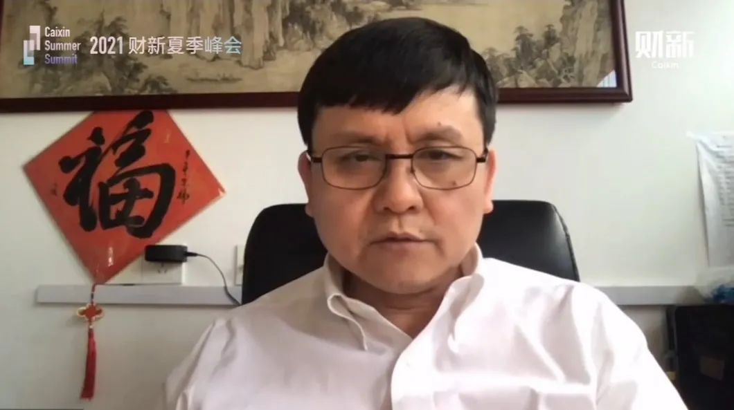 张文宏在2021财新夏季峰会发表视频连线演讲,视频演讲截屏。