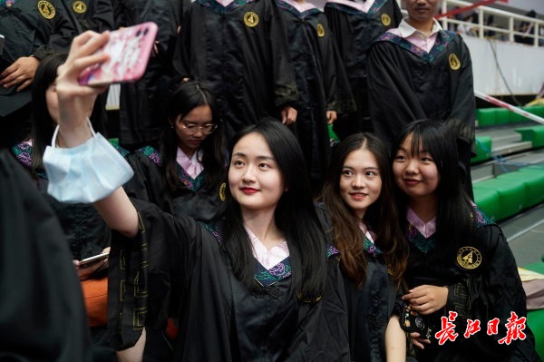 于淸漪说,去年她没法回来参加毕业典礼,在家的时候,以前极少刷抖音的她,疯狂刷与武汉有关的视频,每天不下10次输入中南财经政法大学搜索相关信息。这个月,她在北京的考试一结束,马上赶回母校,顺利地找到了室友,看到繁华依旧的武汉,在绿意盎然的校园里,她们不停地合影、录视频。“今天,感谢母校送给我们珍贵的毕业典礼。”