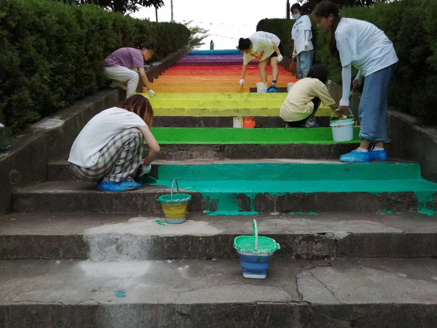 环境艺术设计专业的同学们正在绘制“彩虹阶梯”。学校供图