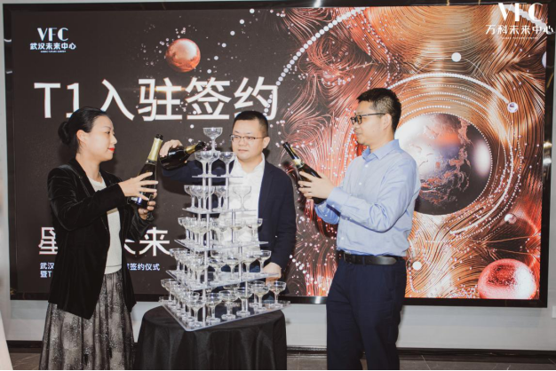 万科未来中心T1企业入驻签约仪式由万科华中区域事业集团首席合伙人蔡平先生、万物梁行武汉区域总经理钟曼丽女士、印力武汉城市公司合伙人潘朝政先生一同上台完成。相信有了众多实力企业的签约入驻,万科未来中心将携手各企业一起,推创城市经济新高,共创美好未来!