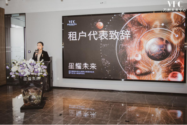 雅诗阁签约仪式完成后,万物梁行执行董事武汉区域总经理钟曼丽女士上台发表了演讲。万物梁行是万科物业与戴德梁行成立的合资公司,融合了双方母公司的优势,结合国际品质管控体系与国内客户服务的优异实践,致力于为更多客户提供全面、高效、定制化的解决方案。钟女士在衷心感谢万科未来中心选择万物梁行提供商业物业服务的同时,也表达了万物梁行坚信凭借其过往的丰富经验与克而瑞2021年办公物业服务力企业第一名的企业实力,定能够为万科未来中心全体业主创造全新的商务体验,共同服务和保障企业的美好发展,合力打造汉阳区的美好明天。