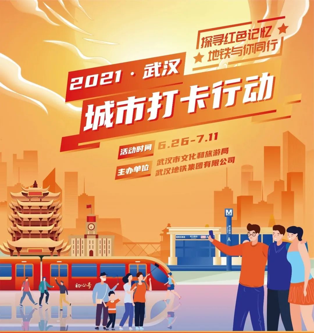 为更好地让市民、乘客感受建党百年风华,寻访英雄武汉红色记忆,6月26日至7月11日,武汉市文化和旅游局联合武汉地铁集团举行“探寻红色记忆,地铁与你同行——2021武汉城市打卡行动”。