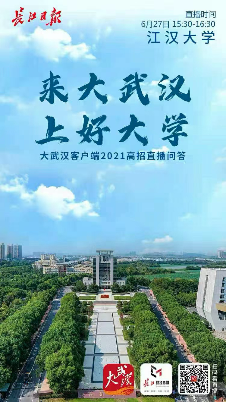 6月25日至6月28日,长江日报大武汉客户端、长江财经传媒研究院推出“来大武汉上好大学”高招咨询线上直播。武汉19所高校特色学院院长和招生办负责人做客长江日报大武汉客户端直播间,全面解读最新招生信息。如有想咨询的问题,大家可在直播间留言。