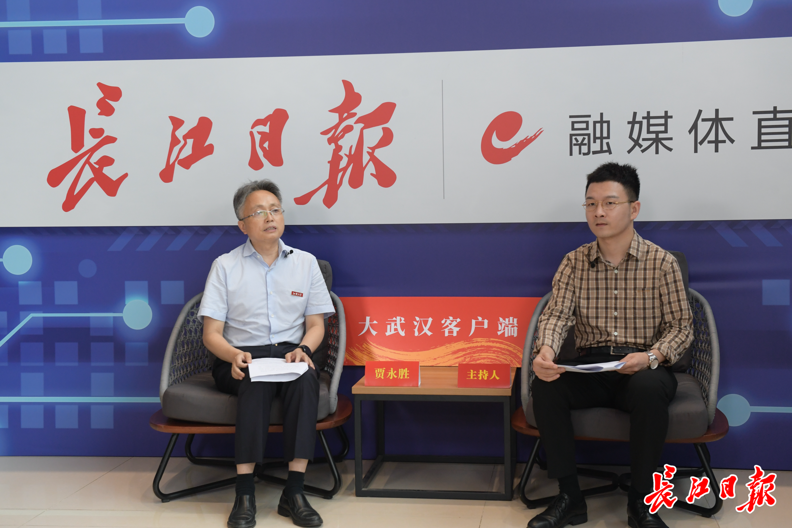 江汉大学副校长贾永胜做客长江日报大武汉客户端直播间。长江日报记者刘斌 摄