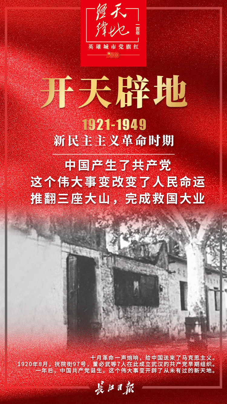 从1921年7月至1949年10月,中国共产党团结带领中国人民进行了28年浴血奋战,完成新民主主义革命,建立中华人民共和国。在这开天辟地的历史伟业中,武汉曾三度成为中国革命的中心: