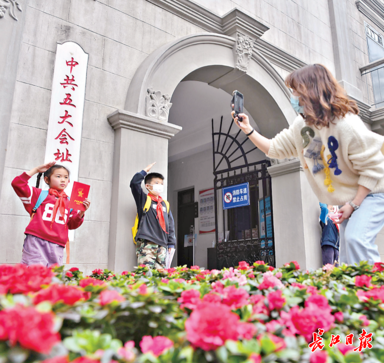孩子们在家长的带领下参观中共五大会址纪念馆,接受爱国主义教育。长江日报记者苗剑 摄