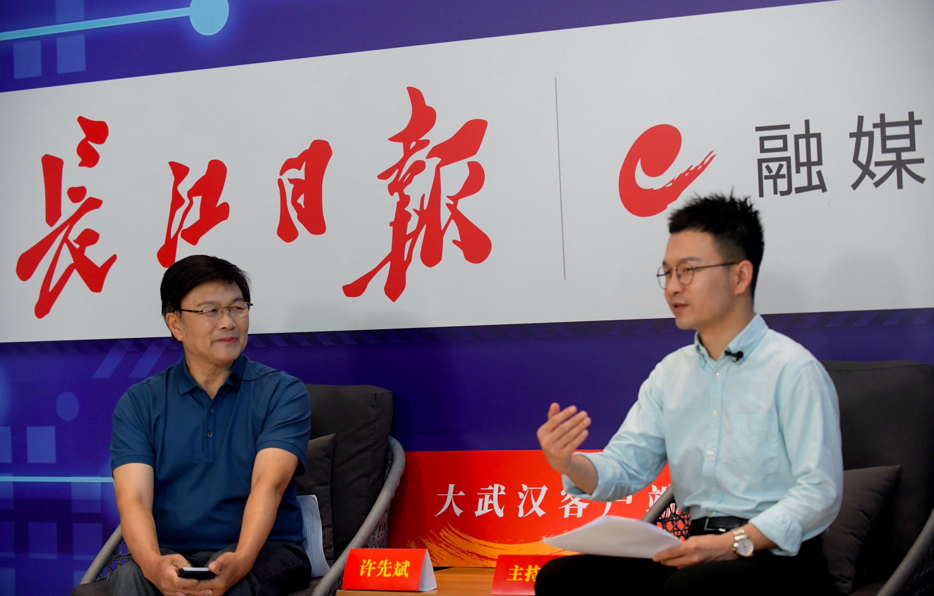 许先斌(左)做客长江日报大武汉客户端直播间。 长江日报记者刘斌 摄