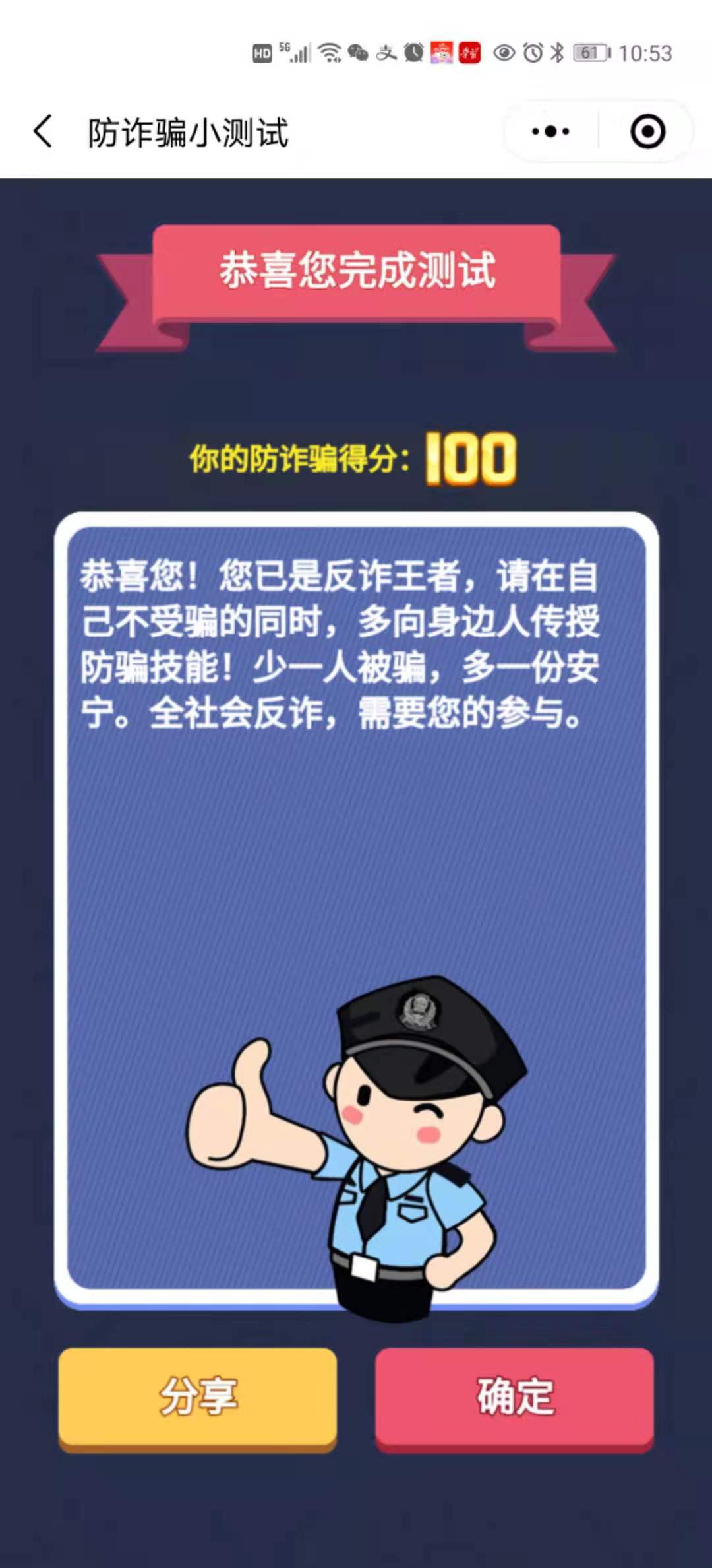 武汉反诈专区“答一答”防诈骗小测试。通讯员冯威供图