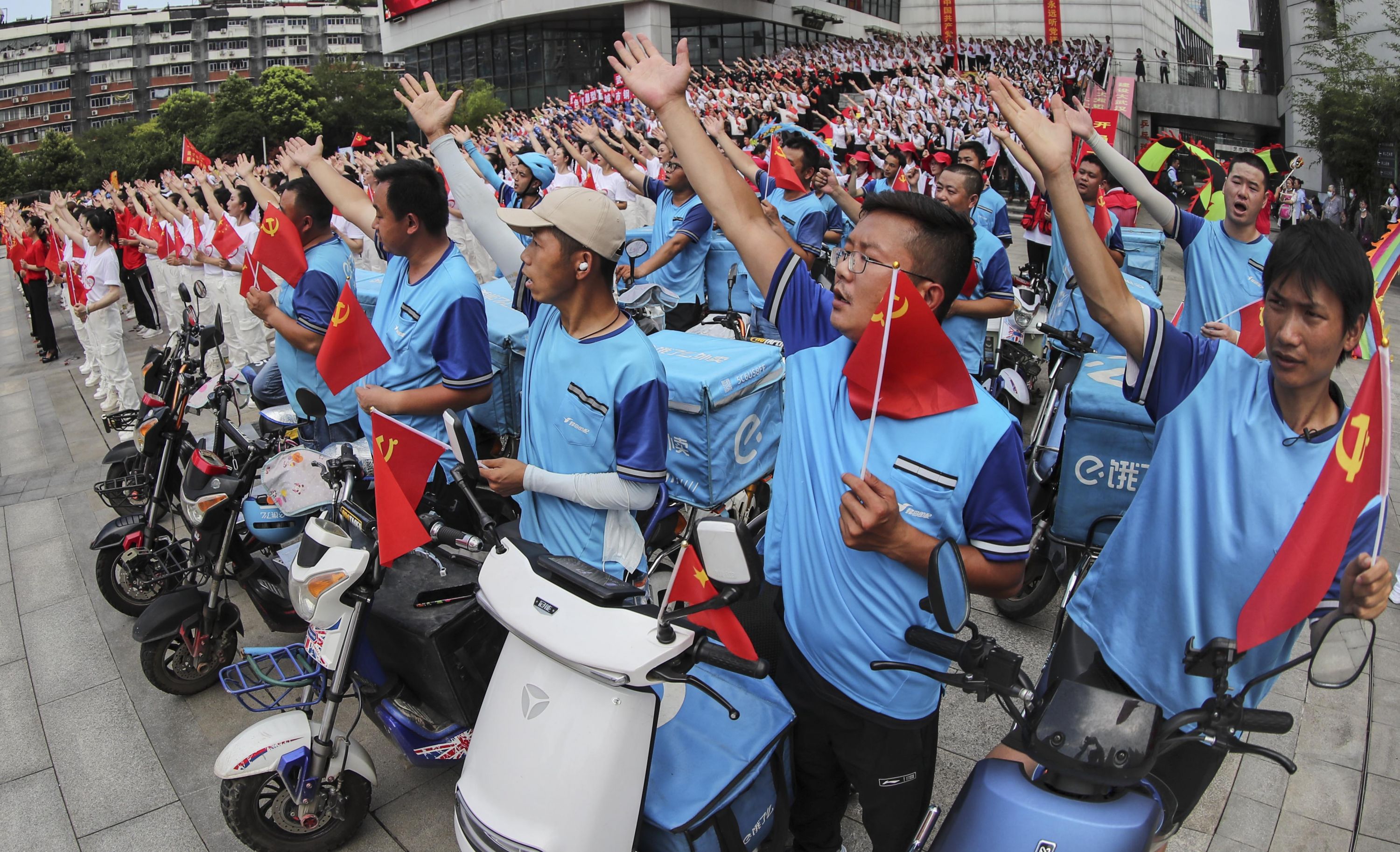 活动现场,慷慨激昂的歌声点燃了人们的满腔热血,职工代表围成一个巨大的“100”,托起一面鲜红的党旗,各行各业职工代表围绕在党旗和数字“100”周围,用真诚的歌声,讴歌建党100周年来取得的辉煌成就,一句句耳熟能详又感人至深的歌词,既表达了武汉广大职工群众对党、对祖国的崇敬与礼赞,又展现出职工在党的领导下砥砺奋进、再创辉煌的决心和信心。