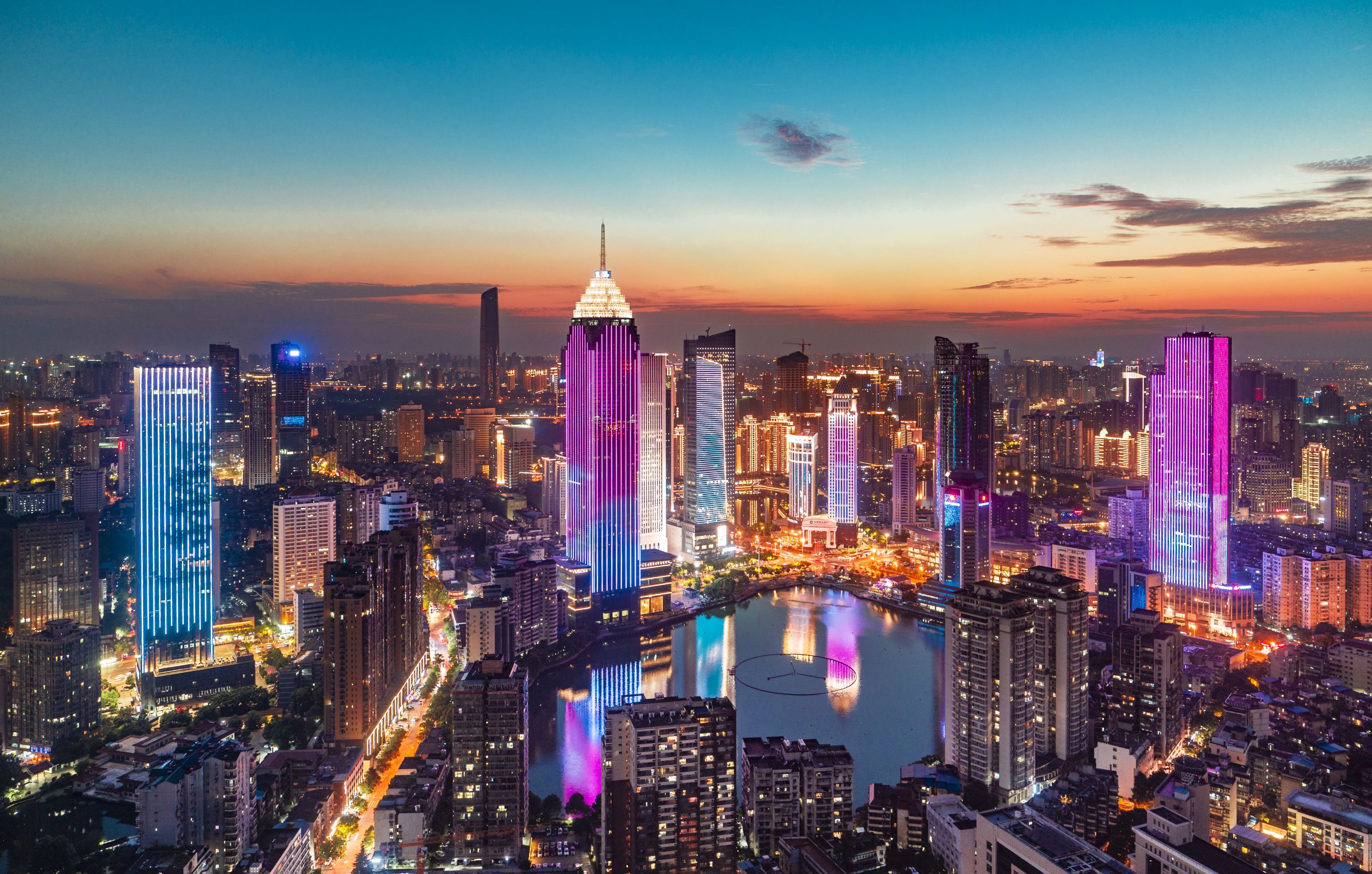 “武汉金融城”流光溢彩。