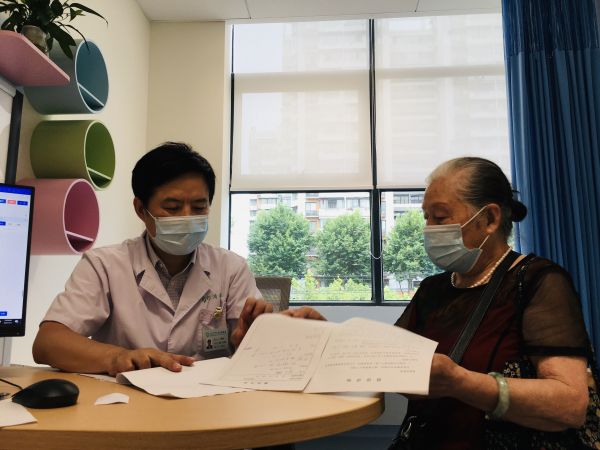 武汉医学会肿瘤学分会主委、同济医院肿瘤中心主任袁响林见市民等待焦灼,争分夺秒提前开诊。活动启动仪式开始前,他已经仔细接诊了3位病患。王女士笑眯眯地走出诊室,她说:“袁响林教授的几句话,让我吃下了定心丸。”