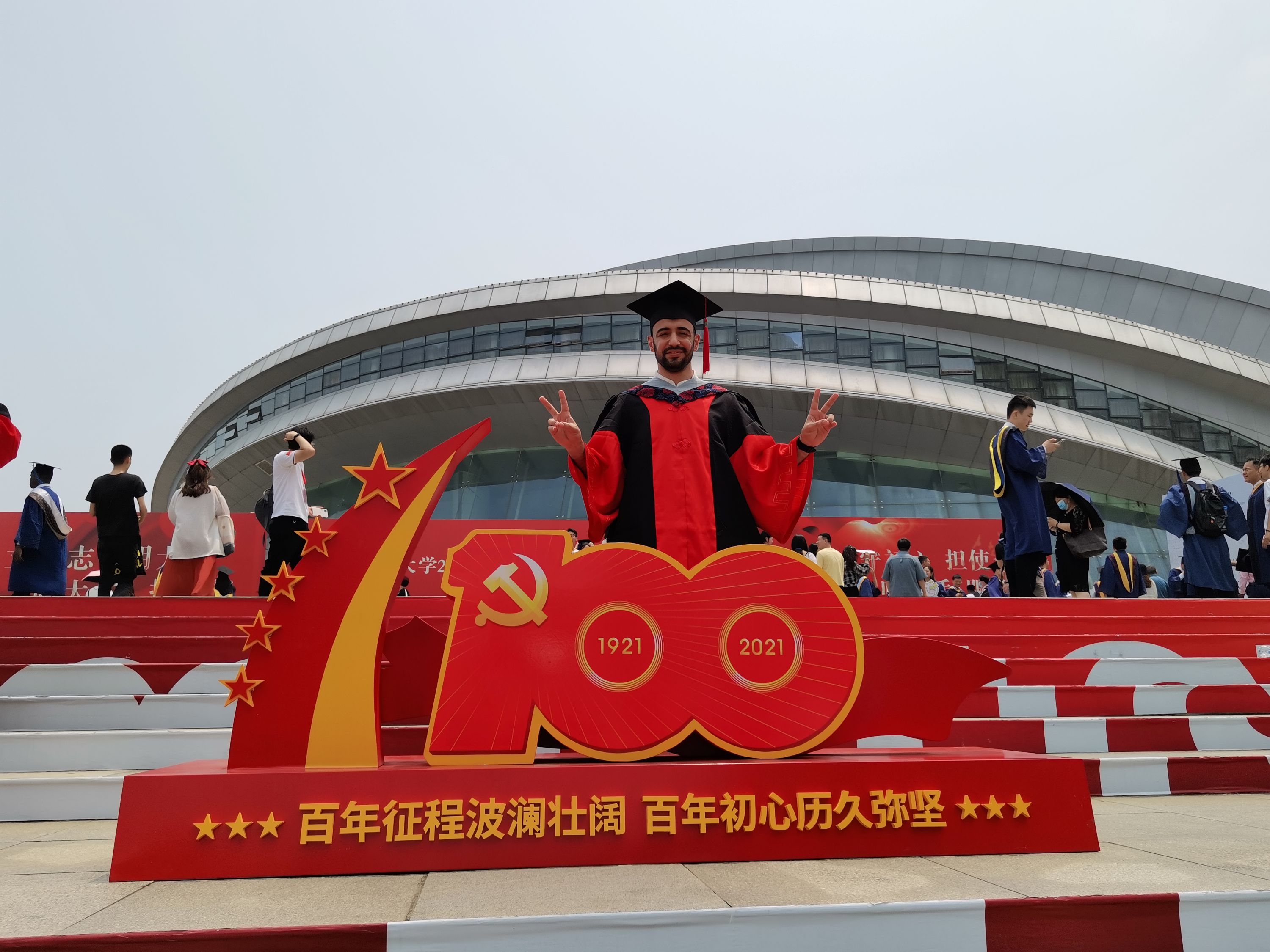 7月1日清早,华中科技大学黎巴嫩博士毕业生杨航已经坐到电视机前,兴致勃勃地观看庆祝中国共产党成立100周年大会。虽然不懂中文,但这并没有影响他观看大会的兴致。大会结束后,他立刻开始阅读媒体的相关英文报道。