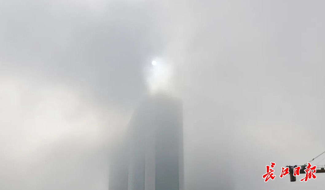 6日清晨,汉口建设大道,太阳被一片雾气笼罩。长江日报记者詹松 摄