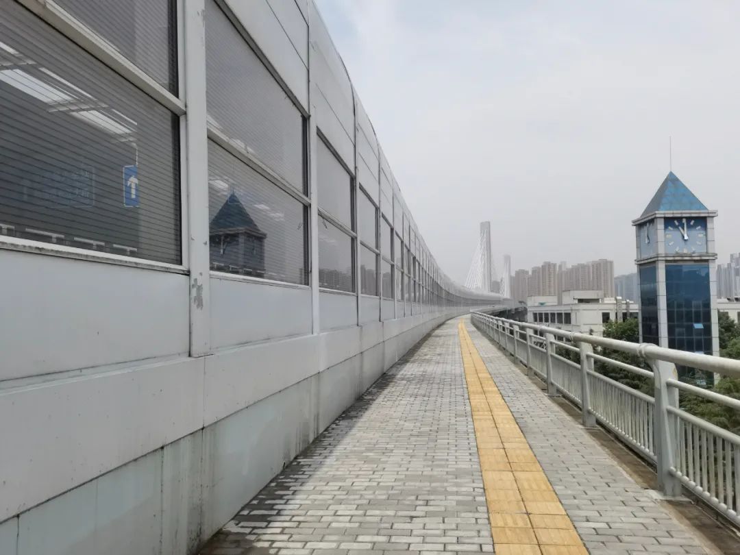 杨泗港快速路跨铁路高架两侧的人行非机动车道开通,沿着防滑石板铺设的匝道骑行而上,可俯瞰首义学院和湖北工业大学两所校园的风光,约5分钟后可至白沙洲复地悦城小区附近。