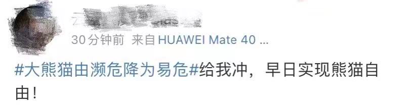 还有网友笑称,虽然降级了,但不影响大熊猫的国宝地位。希望继续努力,早日实现“熊猫自由”,期待“人手一只大熊”的那一天。