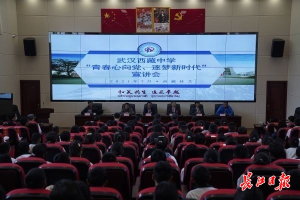 “同学们,你们知道在青藏铁路建成之前,内地西藏班的学生回家,需要转几次交通工具吗?”陈吉司介绍,武汉西藏中学最初校址设在荆州沙市,学生首先要从沙市坐六七小时车到武汉,再花20多小时从武汉坐火车到成都,再从成都坐飞机回拉萨,时间长、转乘多、价格贵,学生都是三年才回家一次。青藏铁路通车后,内地西藏班学生回家少了很多周折,路费也便宜了很多,每年暑假都能回家探亲。