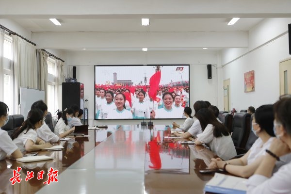 7月1日,武汉市金银潭医院集中收看“庆祝中国共产党成立100 周年”大会直播盛况。 长江日报记者杨涛 张剑 通讯员林坤 摄